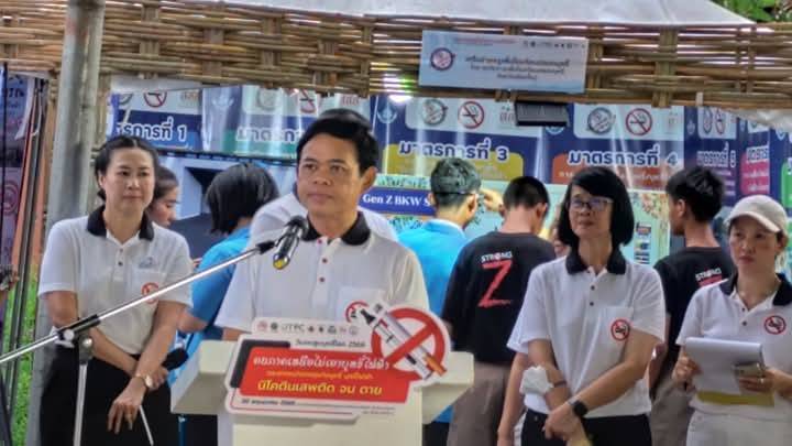 วันที่ 20 พฤษภาคม 2568 เวลา 16.30 – 20.00 น. ณ ลานหน้าพระพุทธมหาธรรมราชาเฉลิมพระเกียรติ จังหวัดเพชรบูรณ์ มูลนิธิรณรงค์เพื่อการไม่สูบบุหรี่ ร่วมกับสำนักงานเขตพื้นที่การศึกษามัธยมศึกษาเพชรบูรณ์ สมาคมองค์กรสาธารณประโยชน์เพื่อสังคมไทยเข้มแข็งจังหวัดเพชรบูรณ์ และภาคีเครือข่ายจังหวัดเพชรบูรณ์ จัดกิจกรรมเนื่องในวันงดสูบบุหรี่โลก 2568 เพื่อให้เกิดการสื่อสารสร้างกระแสในระดับพื้นที่ ให้มีความรู้ ตระหนักถึงโทษและพิษภัยการเสพติดนิโคตินของบุหรี่ไฟฟ้า โดยมีนายกกชัย ฉายรัศมีกุล รองผู้ว่าราชการจังหวัดเพชรบูรณ์เป็นประธานเปิดกิจกรรม มี ดร กนก ยนต์ชัย ผู้อำนวยการสำนักงานเขตพื้นที่มัธยมศึกษาจังหวัดเพชรบูรณ์ กล่าวรายงาน โดยได้รับการสนับสนุนจากสำนักงานกองทุนสนับสนุนการสร้างเสริมสุขภาพ (สสส.) กิจกรรมภายในงานประกอบด้วย การเสวนาประเด็น กระชากหน้ากากธุรกิจบุหรี่ บุหรี่ไฟฟ้า: นิโคตินเสพติด จน ตาย โดย ศ.นพ.ประกิต วาทีสาธกกิจ ประธานมูลนิธิรณรงค์เพื่อการไม่สูบบุหรี่ ร่วมเสวนากับผู้แทนภาคีเครือข่าย กิจกรรมปล่อยของ “Gen Z ภาคเหนือ ไม่เอาบุหรี่ไฟฟ้า บูธนิทรรศการ ให้ความรู้ทางด้านวิชาการจากภาคีเครือข่าย ได้แก่ สำนักงานสาธารณสุขจังหวัด , คลีนิคฟ้าใส โรงพยาบาลเพชรบูรณ์ เครือข่ายองค์กรปกครองส่วนท้องถิ่น โดยเทศบาล ต.วังทอง จ.พิษณุโลก เครือข่ายครูเพื่อโรงเรียนปลอดบุหรี่ โดยจุดจัดการจังหวัดเพชรบูรณ์ และจังหวัดเชียงใหม่ เครือข่าย Gen Z Gen strong เลือกไม่สูบ โดย ชมรม Gen Z จังหวัดเพชรบูรณ์ เครือข่ายศูนย์พัฒนาเด็กเล็ก Gen Alpha โดยโรงเรียนราชานุบาล จ.น่าน การอาชีวศึกษาเพชรบูรณ์ ศูนย์การเรียนรู้ระดับอำเภอชนแดน เครือข่ายงดเหล้าภาคเหนือตอนล่างแจกสื่อประชาสัมพันธ์, เล่นเกม แจกของที่ระลึก/รางวัล, บริการตรวจสุขภาพ และให้คำปรึกษาการเลิกบุหรี่ บุหรี่ไฟฟ้า พร้อมด้วยการแสดงเจตนารมณ์ของกลุ่มเยาวชน Gen Z เพชรบูรณ์ และเสียงสะท้อนจากเยาวชนและผู้ปกครอง เพื่อเน้นย้ำถึงอันตรายและผลกระทบของบุหรี่ไฟฟ้าต่อสุขภาพทั้งในระยะสั้นและระยะยาว
