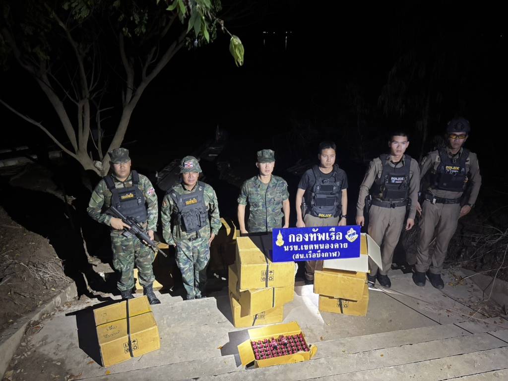 บึงกาฬ... นรข.ร่วมกันตรวจยึดยาแก้ไอน้ำเชื่อมผสมโคเดอีนส่งขายข้ามลาว