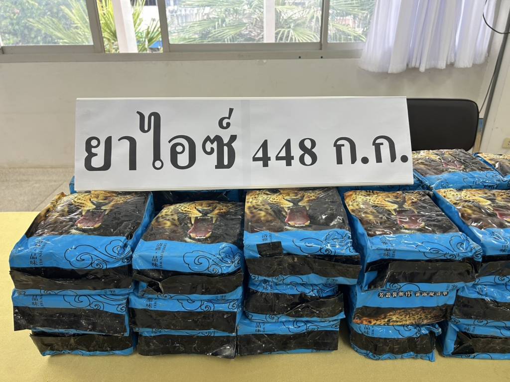 จังหวัดอุดรธานี แถลงข่าวการจับกุมผู้ต้องหาพร้อมของกลางยาไอซ์ จำนวน 448 กิโลกรัม