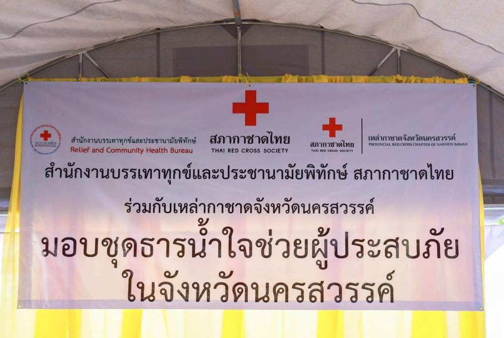 สภากาชาดไทยช่วยน้ำท่วม มอบถุงธารน้ำใจสภากาชาดไทย ช่วยเหลือผู้ประสบภัยอุทกภัย ในพื้นที่ต.แควใหญ่ อ.เมือง จ.นครสวรรค์ โดยสำนักงานบรรเทาทุกข์และประชานามัยพิทักษ์ สภากาชาดไทย ร่วมกับเหล่ากาชาดจ.นครสวรรค์