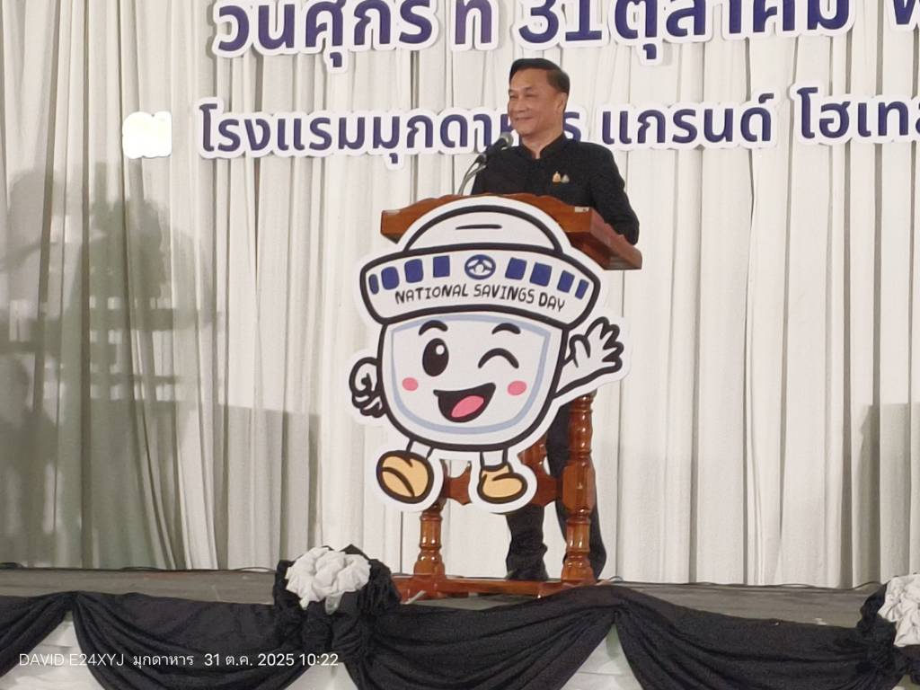 วันที่ 31 ตุลาคม 2568 ที่ห้องประชุมโรงแรมมุกดาหารแกรนด์ จังหวัดมุกดาหาร นายทรงศักดิ์ ทรงศรี รัฐมนตรีช่วยว่าการกระทรวงมหาดไทย เป็นประธานเปิดงาน “มหกรรมวันออมแห่งชาติ และสัมมนาทางวิชาการ ประจำปี 2568” ภายใต้แนวคิด “พลังสหกรณ์ ส่งเสริมความมั่นคงทางการออมให้คนไทย” ภายในงานมีนายมะณู บุญศรีมณีชัย ประธานกรรมการชุมนุมสหกรณ์ออมทรัพย์แห่งประเทศไทย นายวรญาณ บุญณราช ผู้ว่าราชการจังหวัดมุกดาหาร นายประวัติ แดงบรรจง รองอธิบดีกรมส่งเสริมสหกรณ์ พร้อมด้วยผู้บริหารและเครือข่ายสหกรณ์ทั่วประเทศ เข้าร่วมพิธีอย่างคับคั่ง