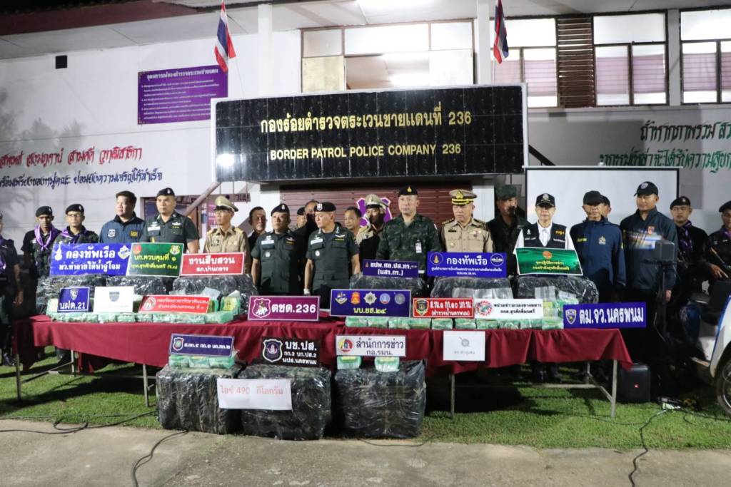 นบ.ยส.24 แถลงข่าวจับกุมขบวนการค้ายา 2 ราย พร้อมของกลางยาไอซ์ จำนวน10 กระสอบ น้ำหนัก 490 กก. ในพื้นที่ จ.นครพนม