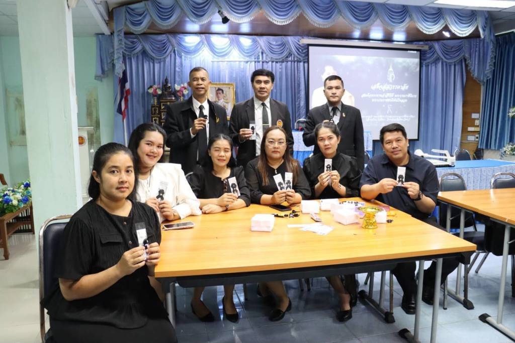ทำริบบิ้นแจก วิทยาลัยอาชีวศึกษาสิงห์บุรีจัดทำริบบิ้น ติดชุดไว้ทุกข์ พระพันปีหลวง มอบให้ทุกส่วนราชการในสิงห์บุรี