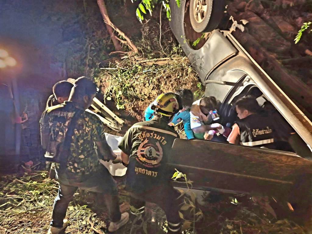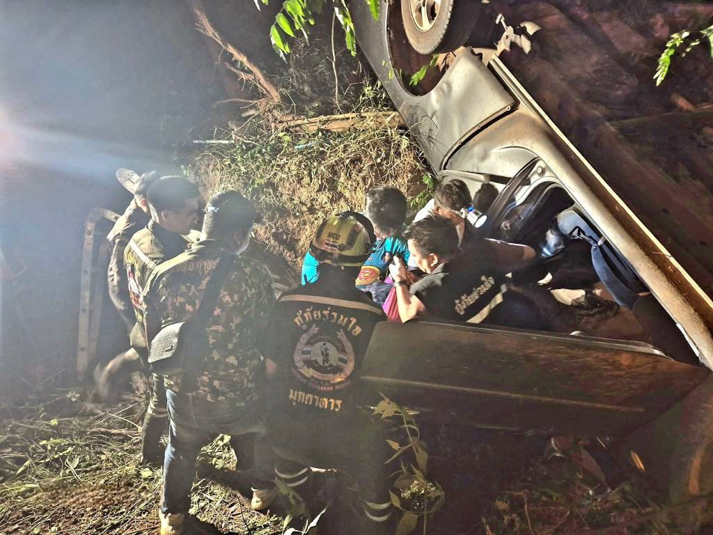 มุกดาหาร -อุบัติเหตุสลด! หนุ่มอยุธยาเสียชีวิตคาที่ หลังรถกระบะพุ่งตกป่าพลิกคว่ำริมทางหลวงมุกดาหาร-คำชะอีสายใหม่