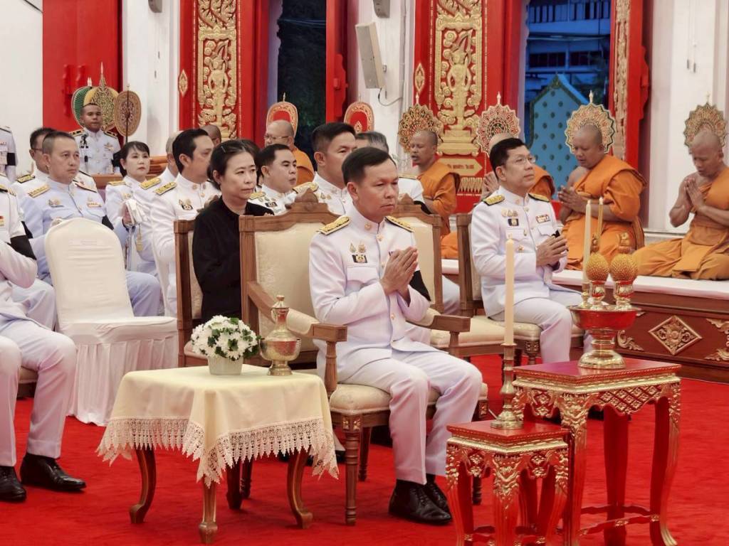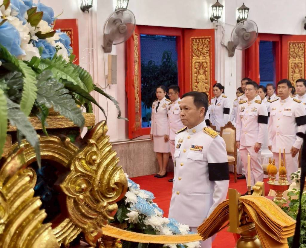 พิธีเช้า เวลา 06.30 น. ร่วมพิธีบำเพ็ญกุศลทางพระพุทธศาสนา เพื่ออุทิศถวายเป็นพระราชกุศล พระสงฆ์สวดพระพุทธมนต์ เพื่อความเป็นสิริมงคลและเพื่อถวายเป็นกุศลแด่พระองค์ท่าน ประธานในพิธีถวายเครื่องสังฆทาน ทอดผ้าบังสุกุล กรวดน้ำ และกราบถวายความเคารพเบื้องหน้าพระฉายาลักษณ์ เป็นการแสดงออกถึงความอาลัยและความกตัญญูกตเวทีต่อพระมหากรุณาธิคุณที่ทรงมีต่อประเทศชาติและพสกนิกร
