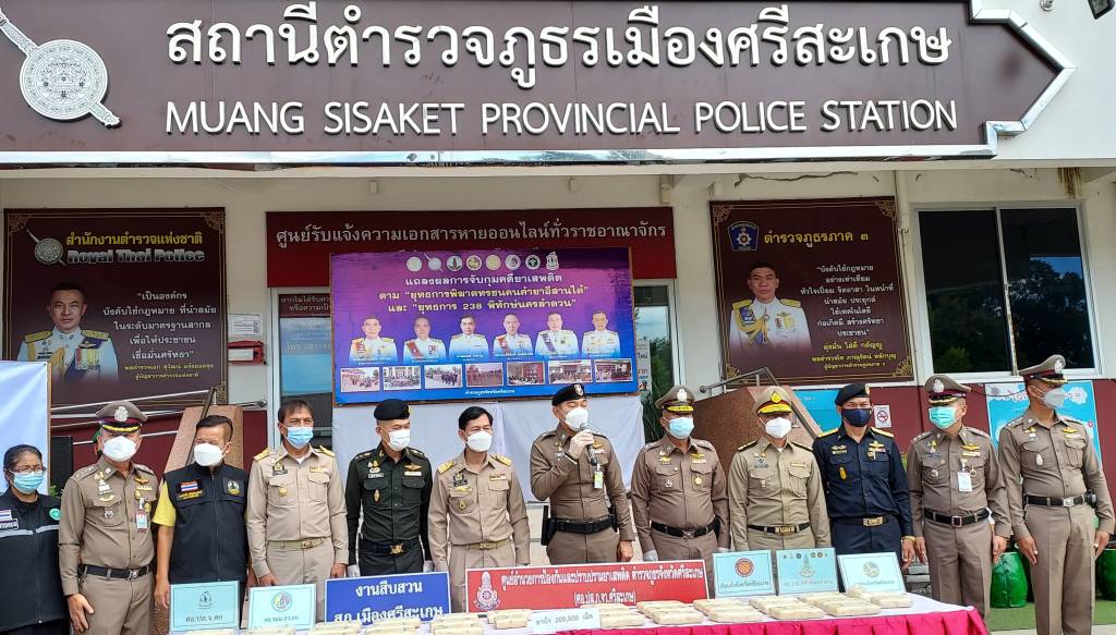 เมื่อวันที่ 17 กันยายน 2564 ผู้สื่อข่าวรายงานว่า ที่บริเวณหน้าสถานีตำรวจภูธรเมืองศรีสะเกษ จ.ศรีสะเกษพล.ต.ท.ภาณุรัตน์ หลักบุญ ผู้บัญชาการตำรวจภูธรภาค 3 (ผบช.ภ.3) พร้อมด้วย นายสำรวย เกษกุล รอง ผวจ.ศรีสะเกษ พล.ต.ต.สันติ เหล่าประทาย ผบก.ภ.จว.ศรีสะเกษ พ.อ.ณัฐพงศ์ จินดาเวช รอง ผอ.กอ.รมน.จว.ศรีสะเกษ พ.ต.อ.ศุภชัย ศักรินพานิชกุล รอง ผบก.ภ.จว.ศรีสะเกษ พ.ต.อ.เทพพิทักษ์ แสงกล้า ผกก.สภ.เมืองศรีสะเกษ พร้อมด้วยเจ้าหน้าที่ตำรวจ ทหาร ฝ่ายปกครอง เจ้าหน้าที่เรือนจำ จ.ศรีสะเกษ ได้เปิดการแถลงข่าวผลการจับกุมเครือข่ายยาเสพติด ในพื้นที่ศรีสะเกษ ตามยุทธการ“พิฆาตทรชนคนค้ายาอีสานใต้” และยุทธการ 238 พิทักษ์นครลำดวน โดยมีการนำเอายาบ้า จำนวน 200,000 เม็ด รถเก๋ง จำนวน 2 คัน มาประกอบการแถลงข่าวในครั้งนี้
