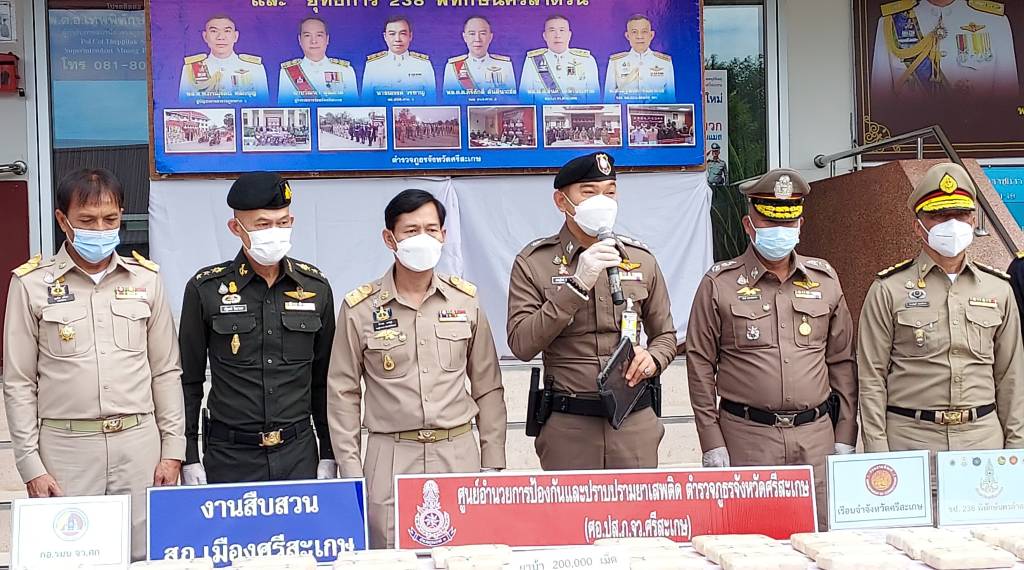 ศรีสะเกษ จับกุมยาบ้ามูลค่ากว่า 12 ล้านบาท ผบช.ภาค 3. เผยเป็นเครือข่ายนายทุนยาบ้ามาจากประเทศลาว ของกลาง 200,000 เม็ด