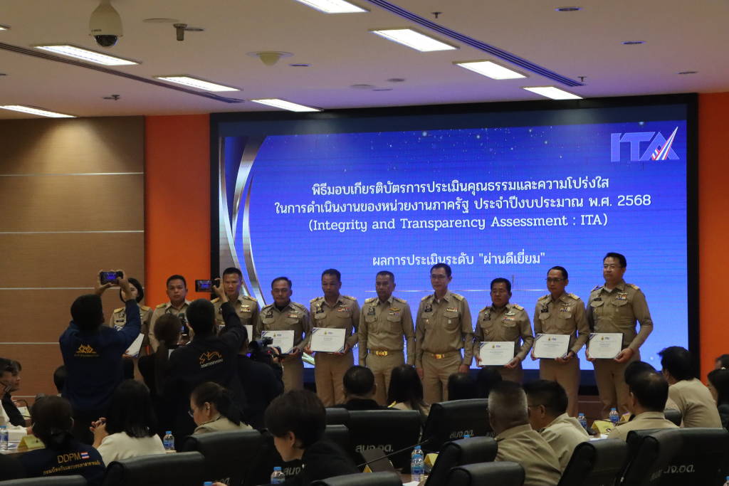 นายชวิช ป้องขันธุ์ นายอำเภอเมืองอุดรธานี เข้ารับมอบเกียรติ “คณะกรรมการป้องกันและปราบปรามการทุจริตแห่งชาติ เพื่อแสดงว่า อำเภอเมืองอุดรธานี จังหวัดอุดรธานี เป็นหน่วยงานที่มีผลคะแนน ระดับ ผ่านดีเยี่ยม ของการประเมินคุณธรรมและความโปร่งใส ในการดำเนินงานของหน่วยงานภาครัฐ (Integrity & Transparency Assessment: ITA) ของอำเภอ ประจำปีงบประมาณ พ.ศ. 2568 (ลงนามโดยนายสุชาติ ตระกูลเกษมสุข ประธานกรรมการ ป.ป.ช.) จาก นายราชันย์ ซุ้นหั้ว ผวจ.อุดรธานี (เป็นประธานมอบรางวัล) ณ ห้องประชุมกรมหลวงประจักษ์ศิลปาคม ชั้น 5 ศาลากลาง จังหวัดอุดรธานี ในวันที่ 27 พฤศจิกายน 2568 เวลา 09.45 น.