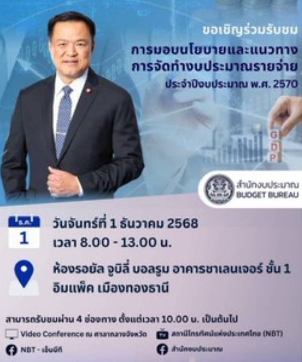 ปากเกร็ด จังหวัดนนทบุรี การประชุมในครั้งนี้ นายอนุทิน ขาญวีรกุล นายกรัฐมนตรี เป็นประธานเปิดการประชุมจัดการประชุมโดยสำนักงบประมาณ ซึ่ง สำนักงานกองทุนพื้นฟูและพัฒนาเกษตกร เข้าร่วมในฐานะ กองทุน