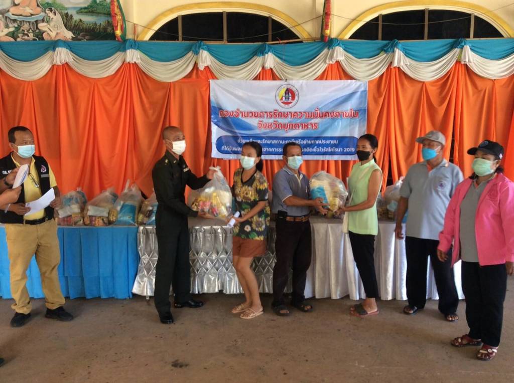 กอ.รมน.มุกดาหาร ในฐานะหน่วยงานความมั่นคง มีบทบาทหน้าที่บูรณาการร่วมกับทุกภาคส่วนทั้งภาครัฐ ภาคเอกชน มวลชน และประชาชน เพื่อมีส่วนร่วมในการป้องกัน และแก้ไขปัญหาที่มีผลกระทบต่อความมั่นคง ให้เกิดความสงบสุขแก่ประชาชน กอ.รมน.มุกดาหาร จึงลงพื้นที่ผนึกกำลังใจคนไทยไม่ทิ้งกัน มอบถุงยังชีพจำนวน 200 ถุงให้กับประชาชนที่ได้รับความเดือดร้อนจากการแพร่ระบาดของโรคติดเชื้อไวรัส covid-19