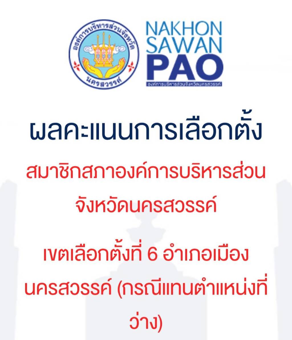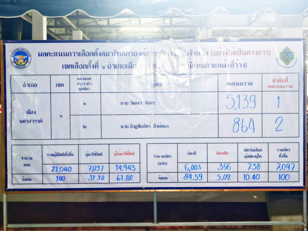 ส.อบจ.เขต 6 เมือง กกต.อบจ. นครสวรรค์นับคะแนน การเลือกตั้งสมาชิกสภาอบจ. เขต 6 อำเภอเมืองนครสวรรค์เสร็จสิ้นแล้ว ได้สมาชิกใหม่นายวัฒนา จันทร