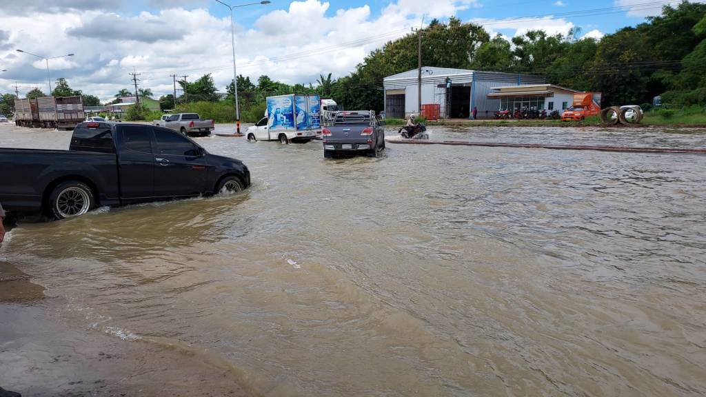 เมื่อวันที่ 22 ก.ย.64 ผู้สื่อข่าวรายงานว่า ที่บริเวณถนนสาย อ.กันทรลักษ์ – จ.ศรีสะเกษ หน้าปั้มน้ำมัน ปตท.กระบี่ ต.หนองหญ้าลาด อ.กันทรลักษ์ จ.ศรีสะเกษ นายวัฒนา พุฒิชาติ ผวจ.ศรีสะเกษ พร้อมด้วย นายบุญประสงค์ นวลสายย์ หน.สำนักงานป้องกันและบรรเทาสาธารณภัย จ.ศรีสะเกษ นายสุกิจ เหลืองสกุลไทย นายอำเภอกันทรลักษ์ และหัวหน้าส่วนราชการที่เกี่ยวข้อง ได้เดินทางไปตรวจสภาพบริเวณที่เกิดน้ำท่วมถนนระดับน้ำท่วมสูงกว่า 60 เซนติเมตร เป็นระยะทางยาวประมาณ 800 เมตร ส่งผลให้รถราทุกชนิดสัญจรไปมาด้วยความยากลำบาก โดยเฉพาะอย่างยิ่งรถขนาดเล็กไม่สามารถที่จะวิ่งผ่านน้ำท่วมไปได้ รถจักรยานยนต์หลายคันต้องจอดเครื่องยนต์ดับกลางสายน้ำที่ท่วมสูง อีกทั้งกระแสน้ำยังได้ไหลเอ่อเข้าไปท่วมบ้านเรือนของชาวบ้านหลายหลังที่อยู่รอบบริเวณนี้ ชาวบ้านต้องเร่งระดมกันเก็บข้าวของมีค่าและสัตว์เลี้ยงนำขึ้นไปอยู่บริเวณที่สูง ชาวบ้านหลายครอบครัวไม่สามารถเก็บของได้ทันเนื่องจากระดับน้ำท่วมสูงเร็วมาก ทำให้อุปกรณ์เครื่องใช้ไฟฟ้าและเครื่องใช้ในบ้านหลายอย่างได้รับความเสียหายจำนวนหนึ่ง