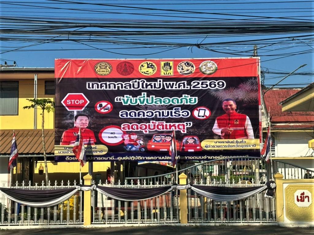 ภายใต้การอำนวยการของ นายชวิศ ป้องขันธ์ นายอำเภอเมืองอุดรธานี ได้ติดตั้งป้ายประชาสัมพันธ์การรณรงค์ป้องกันและลดอุบัติเหตุทางถนนในช่วงเทศกาลปีใหม่ พ.ศ. 2569 ภายใต้ชื่อ “ขับขี่ปลอดภัย ลดความเร็ว อุบัติเหตุ” เพื่อประชาสัมพันธ์สร้างความตระหนักรับรู้ให้กับประชาชนในพื้นที่เกี่ยวกับการป้องกันและลดอุบัติเหตุทางถนนในช่วงเทศกาลปีใหม่ ระหว่างวันที่ 30 ธันวาคม 2568 - 5 มกราคม 2569โดยติดตั้งป้ายบริเวณหน้าทางเข้าที่ว่าการอำเภอเมืองอุดรธานี