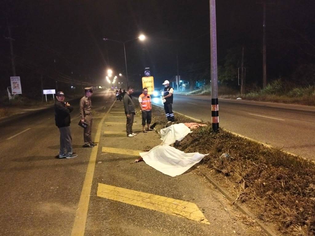 มุกดาหาร -สลดรับรุ่งสาง! ผ้าห่มพันล้อ จยย. เสียหลักฟาดเสาไฟเกาะกลาง ดับคาที่ 2 ศพ
