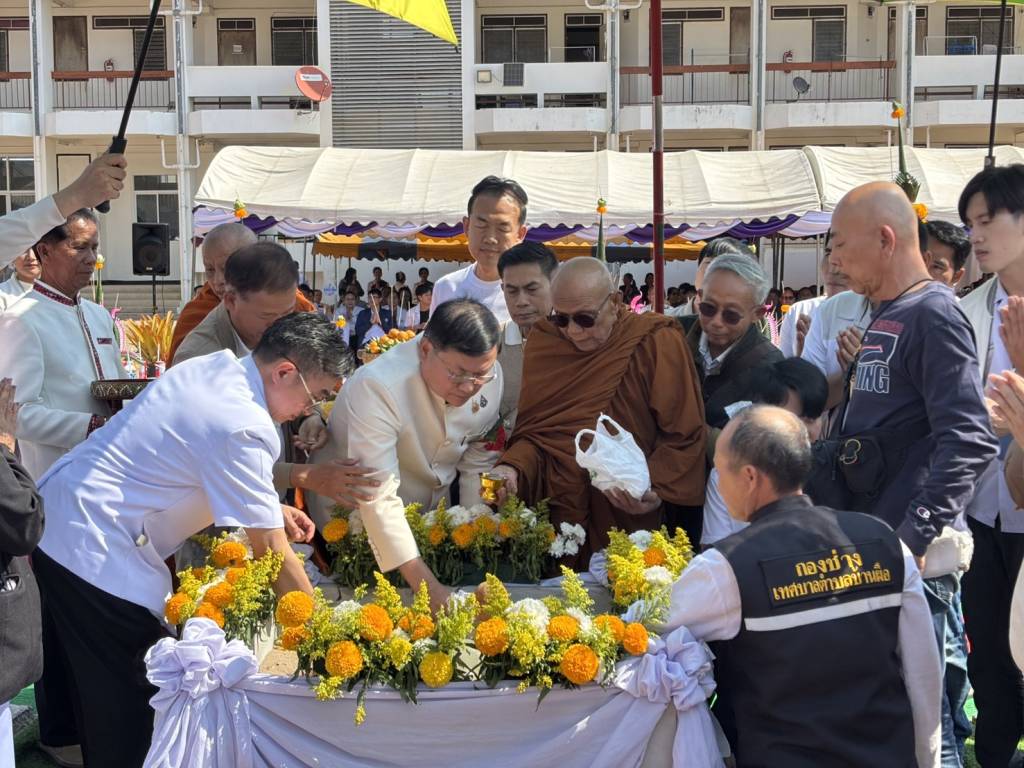 โดยได้รับความเมตตาจากหลวงพ่อสายทอง เตชะธัมโม เจ้าอาวาสวัดป่าห้วยกุ่ม อ.เกษตรสมบูรณ์ จ.ชัยภูมิ รับเป็นองค์อุปถัมภ์ในการก่อสร้าง พร้อมด้วยนายแพทย์ชัยรัตน์ เจริญสุข ผู้อำนวยการโรงพยาบาลบ้านผือ บุคลากรทางการแพทย์ หัวหน้าส่วนราชการ นายอำเภอบ้านผือ ผู้บริหารองค์กรปกครองส่วนท้องถิ่น คณะศิษย์ยานุศิษย์ และประชาชนเข้าร่วมเป็นจำนวนมาก ณ โรงพยาบาลบ้านผือ อำเภอบ้านผือ จังหวัดอุดรธานี