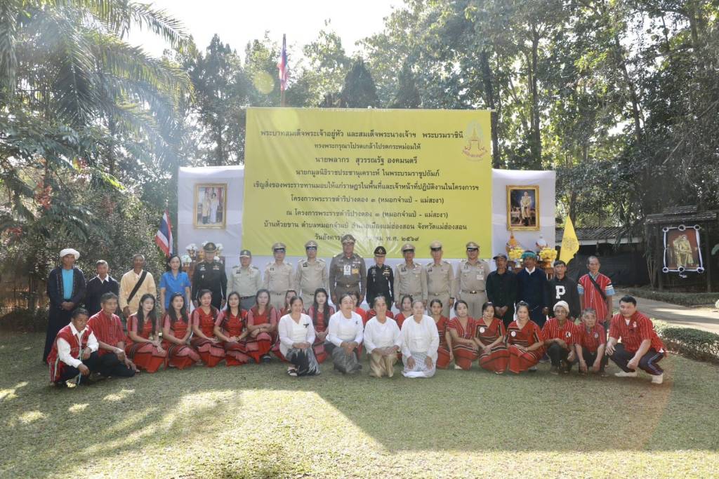 วันอังคารที่ 27 มกราคม 2569 เวลาประมาณ 9.00 น. นายพลากร สุวรรณรัฐ องคมนตรี ประธานอนุกรรมการติดตามและขับเคลื่อนโครงการอันเนื่องมาจากพระราชดำริในพื้นที่ภาคเหนือ นายศุภรัชต์ อินทราวุธ รองเลขาธิการ กปร. พร้อมด้วย เจ้าหน้าที่มูลนิธิราชประชานุเคราะห์ ในพระบรมราชูปถัมภ์ ที่ปรึกษาคณะอนุกรรมการฯ และคณะอนุกรรมการฯ เดินทางไปยังโครงการพระราชดำริปางตอง 3 (หมอกจำแป่-แม่สะงา) บ้านห้วยขาน ตำบลหมอกจำแป่ อำเภอเมืองแม่ฮ่องสอน จังหวัดแม่ฮ่องสอน เพื่อเชิญสิ่งของพระราชทานจากพระบาทสมเด็จพระเจ้าอยู่หัว และสมเด็จพระนางเจ้า ฯ พระบรมราชินี ไปมอบแก่ราษฎรและผู้ปฏิบัติงานในพื้นที่โครงการ ได้แก่ เสื้อกันหนาวสำหรับเด็ก จำนวน 102 ตัว และถุงพระราชทาน จำนวน 128 ถุง จากนั้นคณะฯ รับฟังบรรยายสรุปผลการดำเนินงานโครงการพระราชดำริปางตอง 3 ซึ่งได้ดำเนินงานตามแนวพระราชดำริของสมเด็จพระนางเจ้าสิริกิติ์ พระบรมราชินีนาถ พระราชชนนีพันปีหลวง ในการปลูกป่าทดแทน และส่งเสริมการปลูกหวาย ผลสัมฤทธิ์จากการดำเนินงานโครงการฯ ตั้งแต่ปี 2549 ได้ฟื้นฟูสภาพป่าและปรับปรุงระบบนิเวศ โดยการปลูกป่าทั่วไป ปลูกไม้ใช้สอย และการปลูกป่าหวาย รวมเนื้อที่กว่า 22,900 ไร่ ทำให้ระบบนิเวศมีความอุดมสมบูรณ์ ลำน้ำที่สำคัญในพื้นที่มีน้ำไหลตลอดทั้งปีเอื้อประโยชน์ต่อการทำเกษตร ราษฎรสามารถพึ่งตนเองได้อย่างเหมาะสมและยั่งยืน รวมทั้งสร้างจิตสำนึกในการอนุรักษ์ทรัพยากรป่าไม้โดยใช้แนวทางครูป่าไม้ในการถ่ายทอดความรู้เพื่อปลูกฝังจิตสำนึกให้แก่เยาวชน จากนั้นรับฟังการบริหารจัดการอาคารสถานที่ของโครงการอันเนื่องมาจากพระราชดำริ จังหวัดแม่ฮ่องสอน จำนวน 4 โครงการ ได้แก่ โครงการศูนย์บริการและพัฒนาที่สูงปางตองตามพระราชดำริ โครงการพระราชดำริปางตอง 2 (ปางอุ๋ง) โครงการพัฒนาพื้นที่เฉพาะลุ่มน้ำปาย (ท่าโป่งแดง) และศูนย์ศิลปาชีพจังหวัดแม่ฮ่องสอนในพระบรมราชินูปถัมภ์ (ศูนย์บริการและพัฒนาลุ่มน้ำปายตามพระราชดำริ จังหวัดแม่ฮ่องสอน) พร้อมกับได้มีข้อเสนอแนวทางการส่งมอบอาคารให้ถูกต้องตามระเบียบและหลักเกณฑ์ เพื่อหน่วยงานได้เข้าไปใช้ให้เกิดประโยชน์สูงสุด จากนั้น องคมนตรีได้ปลูกต้นไทรย้อยใบแหลมและปล่อยเขียดแลวคืนสู่ธรรมชาติ