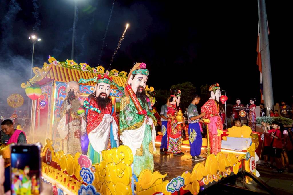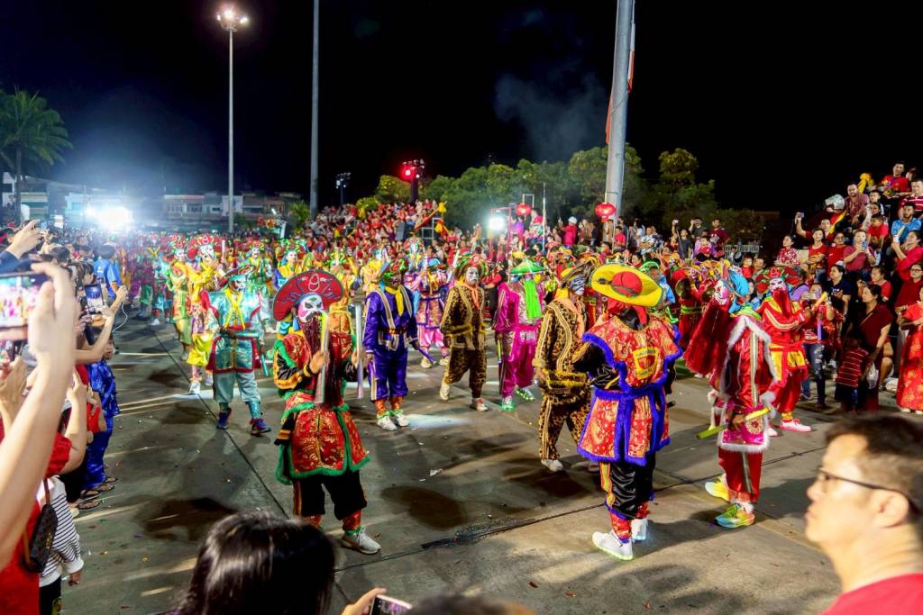 สำหรับขบวนแห่กลางคืน ปีนี้ยิ่งใหญ่และยาวที่สุดในประเทศไทย ท่ามกลางความสนใจของนักท่องเที่ยวทั้งชาวไทยและต่างประเทศนับหมื่นชมความอลังการและความงามของขบวนแห่ต่างๆ โดยทำการออกแห่ไปตามถนนสายหลัก ในตัวเมือง ที่มีมากกว่า 30 ขบวน อาทิ ขบวนรถเทิดพระเกียรติฯ ที่ประดับแสงสีสวยงาม พร้อมกับการแสดงการร่ายรำแบบจีนของธิดามังกร ขบวนองค์สมมติเจ้าแม่กวนอิม (นางสาวศกุนตลา แพรนาม (น้องผักบุ้ง) อายุ 16 ปี) ประทับบนแท่นดอกบัว ขบวนเทิดพระเกียรติฯ ขบวนนางฟ้าจากโรงเรียนและมหาวิทยาลัยต่าง ๆ การแสดงคณะมังกรทอง การแสดงสิงโต 5 ชาติพันธุ์ รำถ้วยไหหนำ เอ็งกอ-พะบู๊ และขบวนต่างๆอีกมากมายที่เป็นที่น่าตื่นตาตื่นใจให้แก่ประชาชนและนักท่องเที่ยว