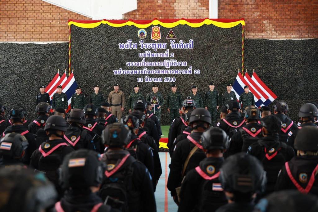 พลโท วีระยุทธ รักศิลป์ แม่ทัพภาคที่ 2 /ผู้บัญชาการศูนย์ปฏิบัติการกองทัพภาคที่ 2 พร้อมคณะ เดินทางลงพื้นที่จังหวัดปัตตานี เพื่อตรวจเยี่ยมการปฏิบัติภารกิจของหน่วยเฉพาะกิจกรมทหารพรานที่ 22 โดยมีผู้บังคับบัญชาและกำลังพลให้การต้อนรับ พร้อมรายงานสรุปสถานการณ์และผลการปฏิบัติงานในพื้นที่รับผิดชอบ โอกาสนี้ แม่ทัพภาคที่ 2 ได้พบปะพูดคุยให้กำลังใจกำลังพลที่ปฏิบัติหน้าที่ในพื้นที่ พร้อมเน้นย้ำให้ทุกหน่วยปฏิบัติภารกิจด้วยความรอบคอบ ยึดมั่นในระเบียบวินัย และคำนึงถึงความปลอดภัยของประชาชนเป็นสำคัญ ควบคู่กับการปฏิบัติงานอย่างเข้าใจบริบทของพื้นที่ซึ่งมีความหลากหลายทางวัฒนธรรม ศาสนา และวิถีชีวิตของประชาชน