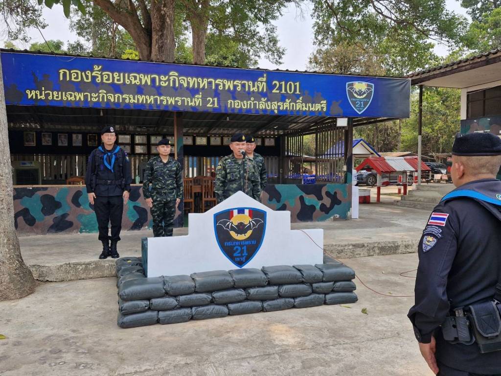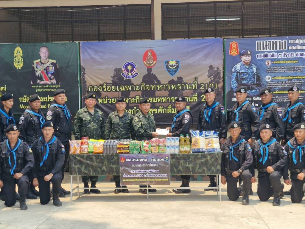 วันที่ 15 เม.ย.69 ที่ บก.ร้อย.ฉก.ทพ.2101 บ.ปากห้วยม่วง ม.2 ต.นาเข อ.บ้านแพง จ.นครพนม พล.ต.มงคล หอทอง ผบ.กกล.สุรศักดิ์มนตรี และคณะลงพื้นที่ตรวจเยี่ยมการปฏิบัติภารกิจของกำลัง ป้องกันชายแดน กองกำลังสุรศักดิ์มนตรี โดยมี พ.อ.ศรณณัฐ นวลมณี ผบ.ฉก.ทพ.21, พ.อ.สุภัทร ชูตินันทน์ ผบ.บก.ควบคุมที่ 1 และ ร.ท.วันชาติ เหมือนปืน ผบ.ร้อย.ฉก.ทพ.2101 ฉก.ทพ.21 พร้อมกำลังพลของหน่วย ให้การต้อนรับ ทั้งนี้ได้ตรวจเยี่ยมให้กำลังใจ “คุมเข้มซีลชายแดน” ป้องกันสิ่งผิดกฎหมายชายแดนไทย-ลาว เพื่อรับทราบข้อมูล สถานการณ์ในพื้นที่ ปัญหาข้อขัดข้องต่างๆ ของหน่วยในพื้นที่ เน้นย้ำงานตามนโยบาย ในการดำเนินการแก้ไขปัญหายาเสพติด บูรณาการด้านการข่าวกับทุกภาคส่วน เพิ่มมาตรการป้องกันอย่างเข้มงวด ในการสกัดกั้น การเฝ้าตรวจและป้องกันชายแดน การจัดระเบียบพื้นที่ และการแก้ไขปัญหาความมั่นคงในพื้นที่ชายแดน เพื่อป้องกันและเฝ้าระวัง การลักลอบนำเข้ายาเสพติด จากขบวนการค้ายาเสพติดข้ามชาติ และสิ่งของผิดกฎหมาย ตลอดจนแรงงานต่างด้าวที่ลักลอบเข้าเมือง ผิดกฎหมาย คุมเข้มการป้องกันเฝ้าระวัง ทั้งทางบกและทางน้ำ ตามจุดเสี่ยงจุดล่อแหลม ช่องทางธรรมชาติ ตามแนวชายแดน และการประสานความร่วมมือกับประเทศเพื่อนบ้าน รวมไปถึงการป้องกันและปราบปรามกลุ่มมิจฉาชีพหรือสแกมเมอร์ (Scammer) รวมไปถึงการให้การช่วยเหลือพี่น้องประชาชนที่ได้รับความเดือนร้อน ในทุกมิติ ในพื้นที่รับผิดชอบ ในโอกาสนี้ ผู้ผบ.กกล.สุรศักดิ์มนตรี ได้มอบสิ่งของบำรุงขวัญให้กำลังป้องกันชายแดนที่ปฏิบัติภารกิจในพื้นที่ชายแดนรับผิดชอบของ กองกำลังสุรศักดิ์มนตรี เพื่อเป็นขวัญกำลังใจในการปฏิบัติหน้าที่ และกล่าวขอบคุณกำลังพลที่ปฏิบัติภารกิจสำคัญในการดูแลแนวชายแดนไทย-ลาว ซึ่งมีความทุ่มเท เสียสละ ปกป้องประเทศชาติจากภัยคุกคาม ยาเสพติด หรือสิ่งผิดกฎหมาย ซึ่งแสดงถึงการปฏิบัติหน้าที่อย่างเต็มกำลังความสามารถ รวมทั้งการช่วยเหลือพี่น้องประชาชนที่ได้รับความเดือนร้อนตามแนวชายแดนไทย-ลาวในทุกสถานการณ์ และรับประทานอาหารร่วมกับกำลังพลสร้างขวัญกำลังใจ สร้างความภูมิใจให้กับกำลังป้องกันชายแดนทุกนาย ที่ปฏิบัติหน้าที่ด้วยความเข้มแข็งอย่างไม่ย่อท้อเพื่อปกป้องอธิปไตยของชาติไทยสืบไป