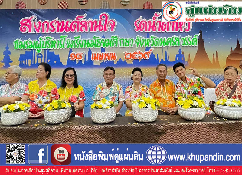 สงกรานต์สายสายใย นว. ม.ศ.5/5 ศิษย์เก่าม่วงขาว ม.ศ.5/5 โรงเรียนนครสวรรค์จัดกิจกรรม "สงกรานต์สานสายใย ผูกใจรดน้ำขอพร คุณครูบุญเรียม ปลอดประดิษฐ์