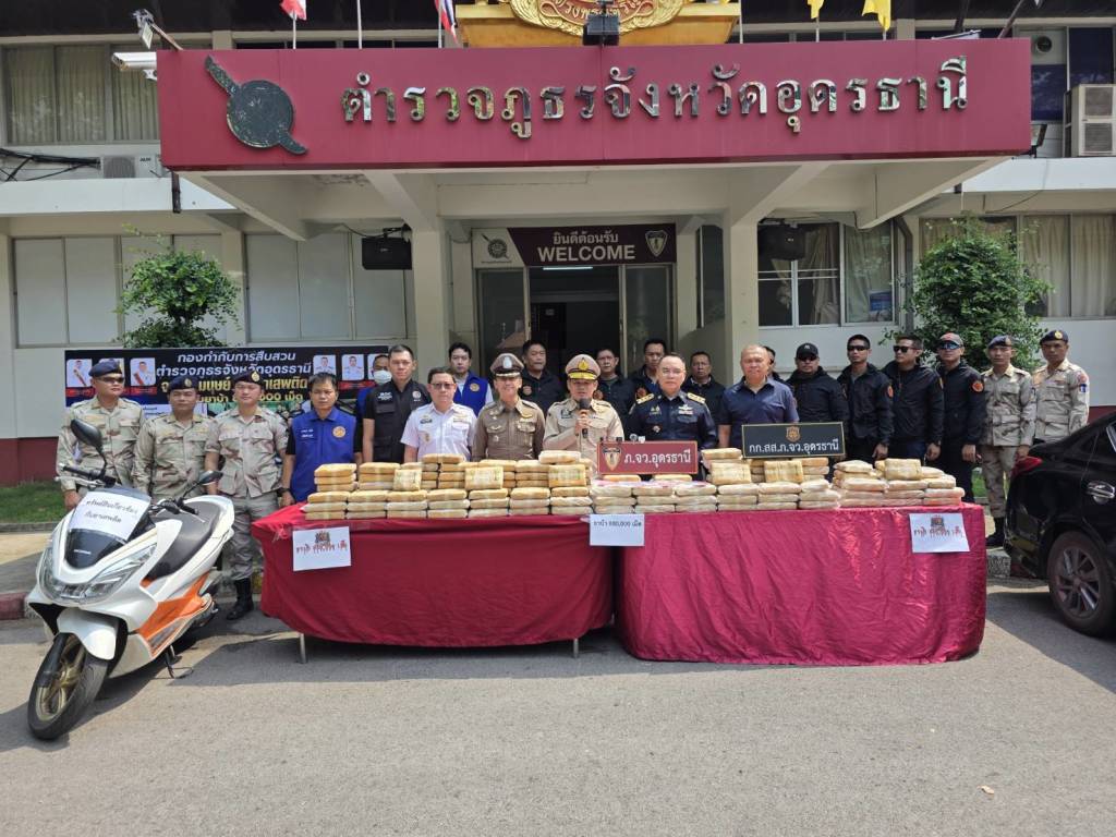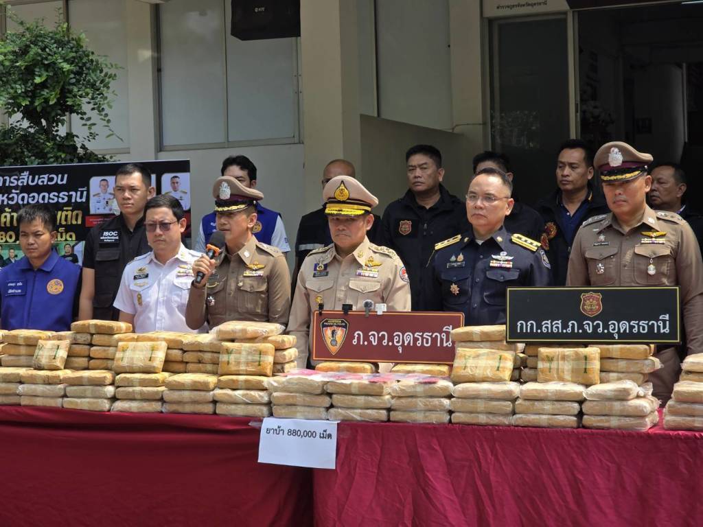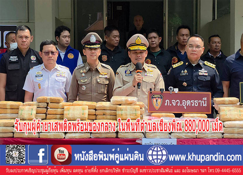 วันพุธที่ 29 เมษายน 2569 เวลา 10.00 น. นายชวิศ ป้องขันธ์ นายอำเภอเมืองอุดรธานี มอบหมายให้ ปลัดอำเภอหัวหน้าฝ่ายความมั่นคง ร่วมแถลงข่าวกรณีจับกุมผู้ค้ายาเสพติดพร้อมของกลาง ในพื้นที่ตำบลเชียงพิณ อ.เมืองอุดรธานี จ.อุดรธานี ซึ่งสามารถจับกุมผู้ต้องหาได้ 1 ราย ทราบชื่อนายรวิพล (สงวนนามสกุล) อายุ 28 ปี ได้ที่ หมู่ที่ 5 ต.เชียงพิณ อ.เมืองอุดรธานี จ.อุดรธานี พร้อมของกลางยาบ้าประมาณ 880,000 เม็ด (มูลค่าประมาณ 35,200,000 บาท) รถจักรยานยนต์ยี่ห้อ ฮอนด้า พีซีเอ็กซ์ 150 จำนวน 1 คัน และรถเก๋งยี่ห้อนิสสันสีดำ จำนวน 1 คัน ซึ่งเจ้าหน้าที่ตำรวจจะได้ขยายผลหากลุ่มแนวร่วมที่เกี่ยวข้อง มาดำเนินคดีต่อไป โดยมีนายพิสิษฐ์ชัย อภัยปิยกุล รองผู้ว่าราชการจังหวัดอุดรธานีเป็นประธานในการแถลงข่าว และมีผู้แทนจากสำนักงาน ปปส. ภาค 4 , รองผู้บังคับการตำรวจภูธรจังหวัดอุดรธานี, ป้องกันจังหวัดอุดรธานี พร้อมสมาชิก อส. ร่วมแถลงข่าว ณ กองบังคับการตำรวจภูธรจังหวัดอุดรธานี