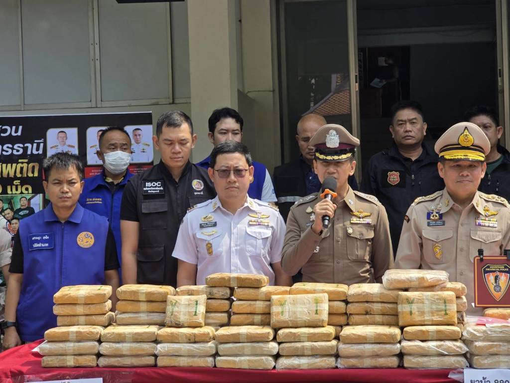 แถลงข่าวกรณีจับกุมผู้ค้ายาเสพติดพร้อมของกลาง ในพื้นที่ตำบลเชียงพิณ 880,000 เม็ด