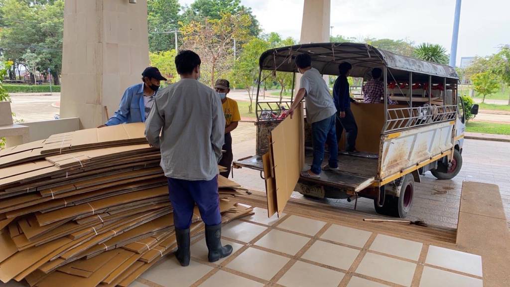 องค์การบริหารส่วนจังหวัดนครสวรรค์ ให้การสนับสนุน เตียงกระดาษ ชุดเครื่องนอน หมอน มุ้ง พัดลม ให้หลายหน่วยงาน หลังโควิดระบาด