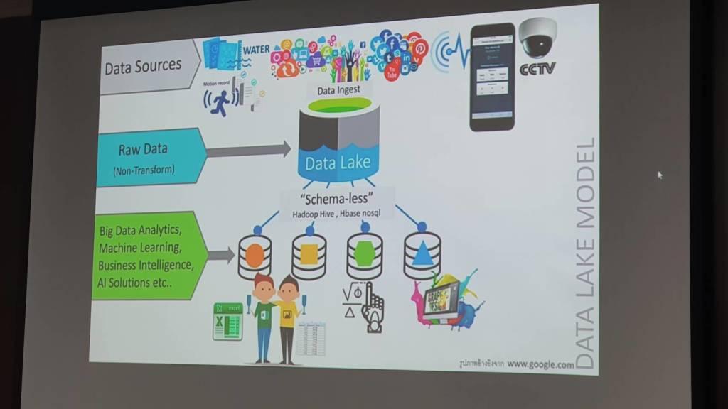 7. การทำบิ๊กดาต้า(Big Data) ทางอบจ.มีโครงการที่จะทำ Big Data ขอให้ทุกกองรวบรวมข้อมูลที่มีอยู่ แล้วนำมาใส่ไว้ใน Big Data ข้อมูลทั้งหมดจะเพิ่มเติมได้ ทำให้ฐานข้อมูลเติบโตได้ตลอด มีเพิ่มทุกวัน และจะนำข้อมูลที่มีมาใช้ในการทำรายงาน การแปรผล การวิเคราะห์ผล รวมทั้งนำมาตอบคำถามตามความต้องการ ด้วยการนำเอาข้อมูลมาใส่ มาสังเคราะห์โดยใช้โมเดล ต้องมีบุคลากรเฉพาะทาง จะมีการใช้ AI (artificial intelligince) มีคนเขียนอัลกอริทึ่ม (Algorithm) จะเริ่มจากการปรับบุคลากรภายในให้ไปเรียนรู้ทำงานก่อน ซึ่งต้องมีการใช้ผู้เชี่ยวชาญเฉพาะทางอีกหลายคน