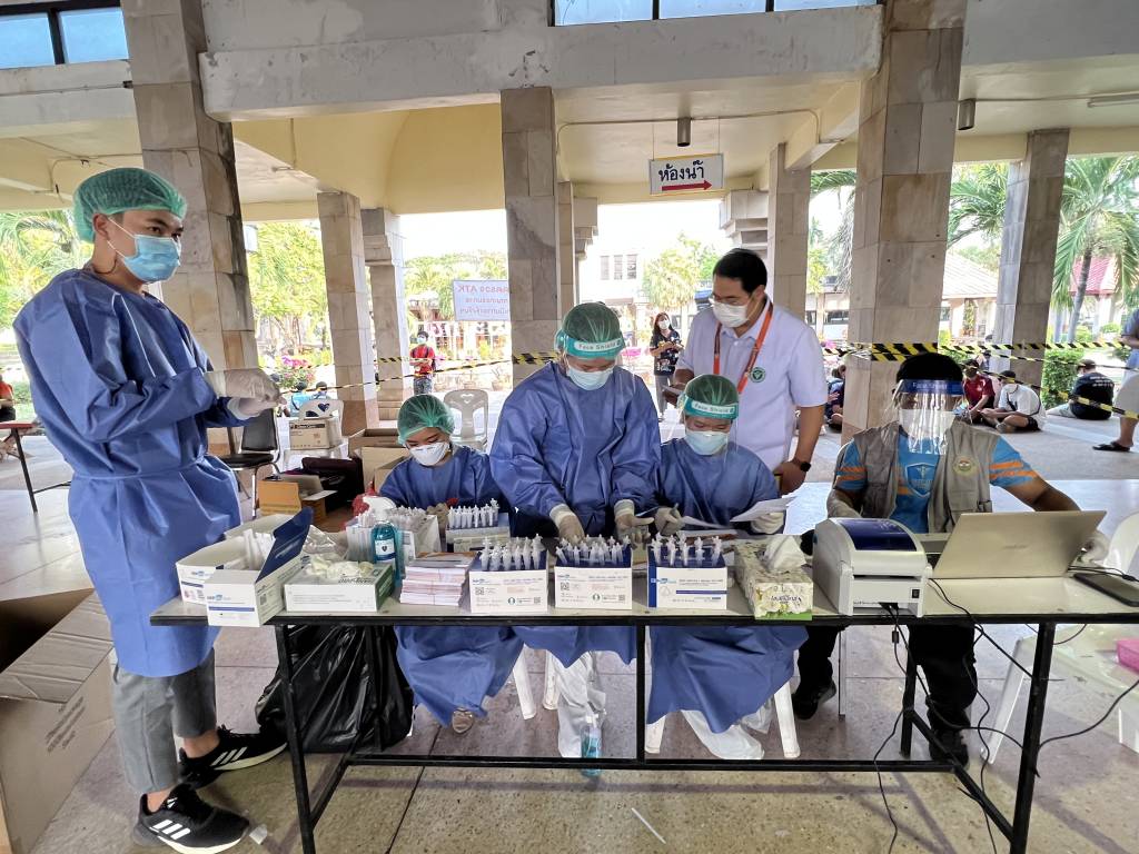 ดร.นพ.สุรเดชช ชวะเดช รอง นพ.สาธารณสุขจังหวัดศรีสะเกษ กล่าวต่อไปว่า ถ้าคิดแบบตัวเลขกลมๆเป็น 100% นี้การติดเชื้อของนักกีฬาเองจะอยู่ที่ประมาณ 30% เท่านั้น ซึ่งผู้ติดเชื้อจะกระจายไปหลายประเภทกีฬาไม่ได้ไปมากที่กีฬาใดกีฬาหนึ่ง เราก็ได้มีการประชาสัมพันธ์สื่อสารให้กับทีมผู้ฝึกสอน ทีมผู้เกี่ยวข้องที่มาร่วมงานต่างๆได้มีการป้องกันตนเอง ส่วนนักกีฬาเองเนื่องจากมีการป้องกันตัวเองเป็นอย่างดีเพราะต้องเข้าแข่งขันกีฬาและร่างกายจะแข็งแรงทุกคนทำให้มีผลการตรวจเป็นบวกไม่มากนักเท่าไหร่ แต่ผลการตรวจเป็นบวกเยอะจะไปเยอะในส่วนผู้ที่เกี่ยวข้องเช่นผู้ฝึกสอนคนขับรถเพราะเราตรวจทุกคน ที่ทุกคนจะต้องผ่านการตรวจคัดกรองหาเชื้อเพื่อป้องกันการแพร่ระบาดโควิด-19 ในการแข่งขันครั้งนี้ โดยการตรวจนี้จะตรวจตั้งแต่วันที่ 3 มีนาคมไปถึงวันที่ 25 มีนาคม 2565 มีกระบวนการตรวจที่ตนได้นำเรียนไปแล้ว โดยจะตรวจทุก 3 วัน แต่เนื่องจากว่าการแข่งขันรอบนี้จะแบ่งเป็นรอบ ๆ มีไม่มาก รอบหนึ่งกีฬาหนึ่งแข่งเสร็จก็ให้กลับ เพราะฉะนั้นแต่ละรอบก็จะมีนักกีฬาหรือผู้เกี่ยวข้องมาประมาณรอบละ 6,000 ถึง 10,000 คน เราก็มีการตระเตรียม ซึ่งสมาคมกีฬาจังหวัดศรีสะเกษโดย ส.ส.สิริพงศ์ อังคสกุลเกียรติ ก็ได้เตรียมชุดตรวจ ATK ไว้ให้เราประมาณ 100,000 กว่าชุดก็คิดว่าเพียงพอ โดยการตรวจจะทำการตรวจทุกวันยอดตรวจวันหนึ่งไม่เคยต่ำกว่า 2,000 คน ทีมงานสาธารณสุขกว่า 80 -90 ชีวิตนี้ต้องมาตรวจทุกวัน โดยได้ทำการตรวจ 3 จุดคือจุดที่ 1 ที่เกาะกลางน้ำจะตรวจ 2 รอบ รอบเช้า 08.00 – 16.00 น.รอบเย็น 16.00 – 20.00 น. เมื่อวานนี้ (11 มี.ค.65)ก็ตรวจไปถึง 21.30 น. เพื่อป้องกันการแพร่ระบาด อีก 2 จุดเป็นโดมโรงเรียนกีฬา ตรวจตั้งแต่เวลา 08.00 - 16.00 น. และที่โดมมหาวิทยาลัยกีฬาแห่งชาติ ตรวจตั้งแต่ 08.00 – 16.00 น. ก็มีการสับเปลี่ยนหมุนเวียนของทีมงานสาธารณสุขของทั้ง 22 อำเภอมาช่วยกันดูแลความปลอดภัยให้กับนักกีฬาและพี่น้องประชาชน