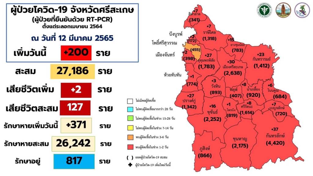 ดร.นพ.สุรเดชช ชวะเดช รอง นพ.สาธารณสุขจังหวัดศรีสะเกษ กล่าวว่า จะต้องทำการตรวจนักกีฬาและผู้ที่เกี่ยวข้องกับการงานกีฬาครั้งนี้ทุกคน ตรวจนักกีฬาผู้ฝึกสอนผู้ติดตามแม้กระทั่งนักข่าวก็ตรวจผู้ที่มีส่วนร่วมกิจกรรมทั้งหมด เราเริ่มตรวจตั้งแต่วันที่ 3 มี.ค.มาจนถึงศรีสะเกษเกมส์เริ่มวันที่ 5 มี.ค. 2565 ยอดตรวจไปแล้ว 13,000 กว่าราย ผลบวกตรวจพบแล้ว 115 ราย คิดตามเปอร์เซ็นต์ของการระบาดวิทยาก็จะอยู่ประมาณ 0.8% หากเทียบเพื่อเห็นภาพมียอดการติดเชื้อการระบาดของโควิด-19 ระลอก 5 โดยปกติแล้วจะอยู่ประมาณ 10% ของการตรวจ ATK หากเทียบกับยอด 0.8 แล้วก็จะถือว่าต่ำมาก ก็ถือว่าประตู 3 บานที่เราได้วางเอาไว้ประตูบานที่ 1 ก็คือให้ทุกคนตรวจ ATK มาจากบ้านและมีผลวัคซีนมาแสดง ประตูบานที่ 2 ก็คือให้ทุกคนที่มาถึงจังหวัดศรีสะเกษแล้วให้มาตรวจ ATK ก่อน หากพบว่าผลเป็นบวกก็ให้เข้าสู่กระบวนการรักษา ถ้าเป็นลบจึงเข้าสู่การแข่งขันกีฬาได้ ประตูบานที่ 3 หลังจากนั้นทุก 3 วันที่อยู่ที่จังหวัด ศรีสะเกษก็จะมีการตรวจ ATK เพราะฉะนั้นจากมาตรการ 3 ส่วนนี้ทำให้เราคัดกรองเจอผู้ที่มีผล ATK เป็นบวกวันละประมาณ 0.8% เท่านั้นเอง ถือว่าเป็นมาตรการที่เราพอใจทางทีมสาธารณสุขและทีมจัดการเองกันก็พอใจในมาตรการนี้ที่เราคัดกรองทำให้เกิดความปลอดภัยในการแข่งขันกีฬาครั้งนี้ได้