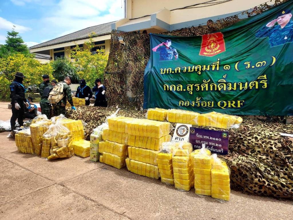 พล.ต. ณรงค์ สวนแก้ว ผู้บัญชาการกองกำลังสุรศักดิ์มนตรี แถลงข่าวหน่วยทหารสนธิกำลังกับฝ่ายปกครองและเจ้าหน้าที่ตำรวจอ.หว้านใหญ่ จังหวัดมุกดาหาร จับกุมขบวนการค้ายาเสพติดข้ามชาติได้ผู้ต้องหา 1 ราย ตรวจยึดยาบ้า 6 ล้านเม็ด และยาไอซ์ 21 กก. มูลค่ากว่า 607 ล้านบาท สืบเนื่องจากหน่วยเคลื่อนที่เร็ว (ผบ.ร้อย.QRF) ได้รับรายงานว่าขบวนการค้ายาเสพติดข้ามชาติจะลักลอบลำเลียงยาเสพติดจากแขวงสะหวันนะเขต สปป.ลาว ข้ามแม่น้ำโขงมาขึ้นฝั่งที่บริเวณบ้านป่งขาม หมู่ที่ 8 ต.ป่งขาม อ.หว้านใหญ่ จึงได้ประสานขอกำลังเจ้าหน้าที่ฝ่ายปกครองและเจ้าหน้าที่ตำรวจ สภ.หว้านใหญ่ รุดไปตรวจสอบตามพื้นที่ได้รับแจ้ง พบเรือหางยาว 2 ลำ พร้อมชายฉกรรจ์นั่งมาในเรือ แล่นมาจากฝั่งแขวงสะหวันนะเขต ข้ามแม่น้ำโขงเข้ามายังจอดที่บริเวณริมตลิ่งบ้านป่งขาม จากนั้นชายฉกรรจ์ที่นั่งมาบนเรือก็ได้ช่วยกันยกถุงพลาสติกสีดำขนาดใหญ่ขึ้นจากเรือมาไว้ที่บนฝั่งแม่น้ำโขงซึ่งมีรถยนต์กระบะจอดรอการบรรทุกอยู่ จึงได้แสดงตัวเป็นเจ้าหน้าที่เพื่อจะเข้าทำการตรวจสอบ แต่เมื่อกลุ่มชายฉกรรจ์ดังกล่าวเห็นเจ้าหน้าที่ก็ได้พากันวิ่งขึ้นเรือที่ติดเครื่องยนต์ไว้แล้วแล่นข้ามไปยังฝั่งแขวงสะหวันนะเขต คงเหลือเพียงนายนำพล สุรัตตัน อายุ 30 ปี อยู่จ.ฉะเชิงเทรา คนขับรถกระบะ ซึ่งหลบหนีไม่ทันเจ้าหน้าที่ควบคุมตัวไว้ได้ จากการตรวจสอบรอบบริเวณพื้นที่พบถุงพลาสติกขนาดใหญ่สีดำ จำนวน 16 ถุง เมื่อเปิดออกอยู่ภายในบรรจุยาบ้าจำนวนรวมทั้งสิืนประมาณ 6,000,000 เม็ด และยาไอซ์ 21 กก. จึงได้ควบคุมตัวนายนำพล พร้อมตรวจยึดยาบ้าและรถยนต์กระบะไม่เป็นของกลางนำส่งพนักงานสอบสวน สภ.หว้านใหญ่ ดำเนินคดีตามกฎหมายต่อไป