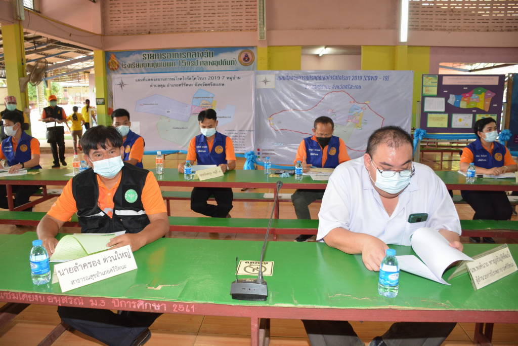 เมื่อวันที่ 26 พ.ค. 64 ผู้สื่อข่าวรายงานว่า ที่ศูนย์ปฏิบัติการควบคุมโรคโควิด-19 (ส่วนหน้า) อ.ศรีรัตนะ จ.ศรีสะเกษ นายวัฒนา พุฒิชาติ ผวจ.ศรีสะเกษ พร้อมด้วย นายสำรวย เกษกุล รอง ผวจ.ศรีสะเกษ พล.ต.ต.สันติ เหล่าประทาย ผบก.ภ.จว.ศรีสะเกษ นายชยุต วงศ์วนิช ผอ.ศูนย์ ปภ.เขต 13 อุบลราชธานี นายบุญประสงค์ นวลสายย์ หน.สนง.ป้องกันและบรรเทาสาธารณภัย จ.ศรีสะเกษ ได้เดินทางมาประชุมร่วมกับคณะกรรมการศูนย์ปฏิบัติการควบคุมโรคโควิด-19 (ส่วนหน้า) อ.ศรีรัตนะ เพื่อติดตามความคืบหน้าของการป้องกันการแพร่ระบาดของเชื้อไวรัสโควิด-19 ในเขต ต.ตูม อ.ศรีรัตนะ โดยมีนายภัทรนันท์ บุญมานัด นายอำเภอศรีรัตนะ พร้อมด้วย นพ.พงค์นาถ หาญเจริญพิพัฒน์ ผอ.รพ.ศรีรัตนะ หน.ส่วนราชการระดับอำเภอศรีรัตนะ นายก อบต.ตูม กำนัน ผู้ใหญ่บ้าน เจ้าหน้าที่เกี่ยวข้องมาเข้าร่วมประชุมเพื่อรายงานความคืบหน้าและปัญหาอุปสรรคในการดำเนินการให้ทราบ ซึ่งปรากฏว่าได้มีการบรรดาประชาชนชาวศรีสะเกษจากหลายภาคส่วน ได้นำเอาข้าวสาร อาหารแห้ง น้ำดื่ม จำนวนมากมาบริจาคเพื่อเป็นการให้การช่วยเหลือชาว ต.ตูม อ.ศรีรัตนะ ที่มีผู้ติดเชื้อโควิด-19 จำนวนมาก ล่าสุดในวันนี้ (25 พ.ค.64) มีผู้ติดเชื้อแล้วจำนวน 72 คนซึ่งเป็นอำเภอที่มีผู้ติดเชื้อมากที่สุดของ จ.ศรีสะเกษ โดย สนง.ป้องกันและบรรเทา สาธารณภัย จ.ศรีสะเกษ ได้นำรถโรงครัวสนาม จ.ศรีสะเกษมาทำอาหารแจกจ่ายให้ชาวบ้านในเขต ต.ตูมทั้ง 7 หมู่บ้านเพื่อเป็นการช่วยเหลือให้มีอาหารรับประทานทุกคนระหว่างที่ต้องถูกปิดหมู่บ้านและถูกกักตัวอยู่แต่ในบ้านของตนเอง