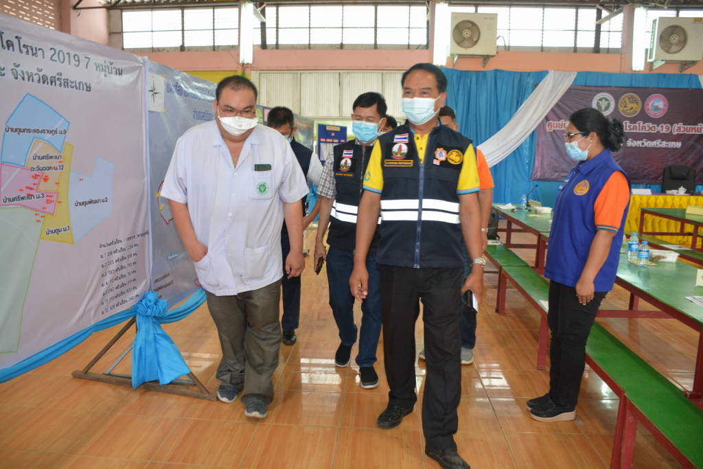 นายวัฒนา พุฒิชาติ ผวจ.ศรีสะเกษ กล่าวว่า ถึงวันนี้เราได้มีการวางแผนในการควบคุมป้องกันการแพร่ระบาดของเชื้อไวรัสโควิด-19 มาได้ 10 วันแล้ว การติดเชื้อต่างๆก็มีแนวโน้มลดลงในการจัดทีมออกตรวจค้นหาผู้ติดเชื้อในเขต ต.ตูมก็เกือบจะครบทุกกลุ่มแล้ว และในวันนี้ก็จะเป็นการตรวจหาเชื้อของกลุ่มใหญ่กว่า 2,000 คน ซึ่งก็เป็นเรื่องยินดีว่าประชาชนมีความตื่นตัวมากแล้วก็ให้ความร่วมมือด้วยดีบางกลุ่มถึงแม้ว่าไม่ใช่กลุ่มเสี่ยงแต่ก็ยังมาขอตรวจเพื่อหาเชื้อด้วย ซึ่งผลออกมาหากพบว่ากลุ่มส่วนใหญ่ผลการตรวจเป็นลบสถานการณ์ก็น่าจะดีขึ้นแต่อย่างไรก็ตาม ตนก็ได้มีวางมาตรการในการป้องกัน การทำเชิงชุมชนในเชิงรุกโดยการจัดบุคลากรทางอำเภอและ อสม.เข้าไปพบกับประชาชนเป็นรายครอบครัว คอยกระตุ้นไม่ให้การ์ดตกถึงแม้ว่าผลการตรวจเชื้อบางคนอาจจะเป็นลบ ส่วนที่ 2 ก็คือด่านที่จะเข้าออกชุมชนก็ต้องให้ความเข้มข้นในการที่จะตรวจคัดกรองไม่ว่าจะเป็นคนในพื้นที่ที่มีความจำเป็นที่จะต้องออกข้างนอกก็จะต้องได้รับการอนุญาต ในขณะเดียวกันคนที่ผ่านไปผ่านมาในพื้นที่นี้ก็จะต้องมีการลงทะเบียนการตรวจสอบเพื่อที่จะสามารถตรวจสอบได้ว่าเมื่อมีเหตุอะไรเกิดขึ้นก็จะสามารถติดตามได้ง่ายซึ่งเป็นระบบที่มีการวางเอาไว้เพิ่มเติม