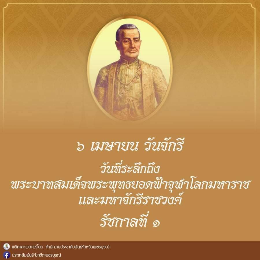 6 เมษายน 2565 เวลา 09.00 น. ที่หอประชุมศูนย์ราชการจังหวัดเพชรบูรณ์ นายกฤษณ์ คงเมือง ผู้ว่าราชการจังหวัดเพชรบูรณ์ เป็นประธานในพิธี "วันพระบาทสมเด็จพระพุทธยอดฟ้าจุฬาโลกมหาราช และวันที่ระลึกมหาจักรีบรมราชวงศ์” โดยมี ข้าราชการ ตุลาการ อัยการ ทหาร ตำรวจ องค์กรปกครองส่วนท้องถิ่น กำนัน ผู้ใหญ่บ้าน สมาชิกเหล่ากาชาด สมาคม ชมรม ประชาชนจิตอาสา ร่วมประกอบพิธี