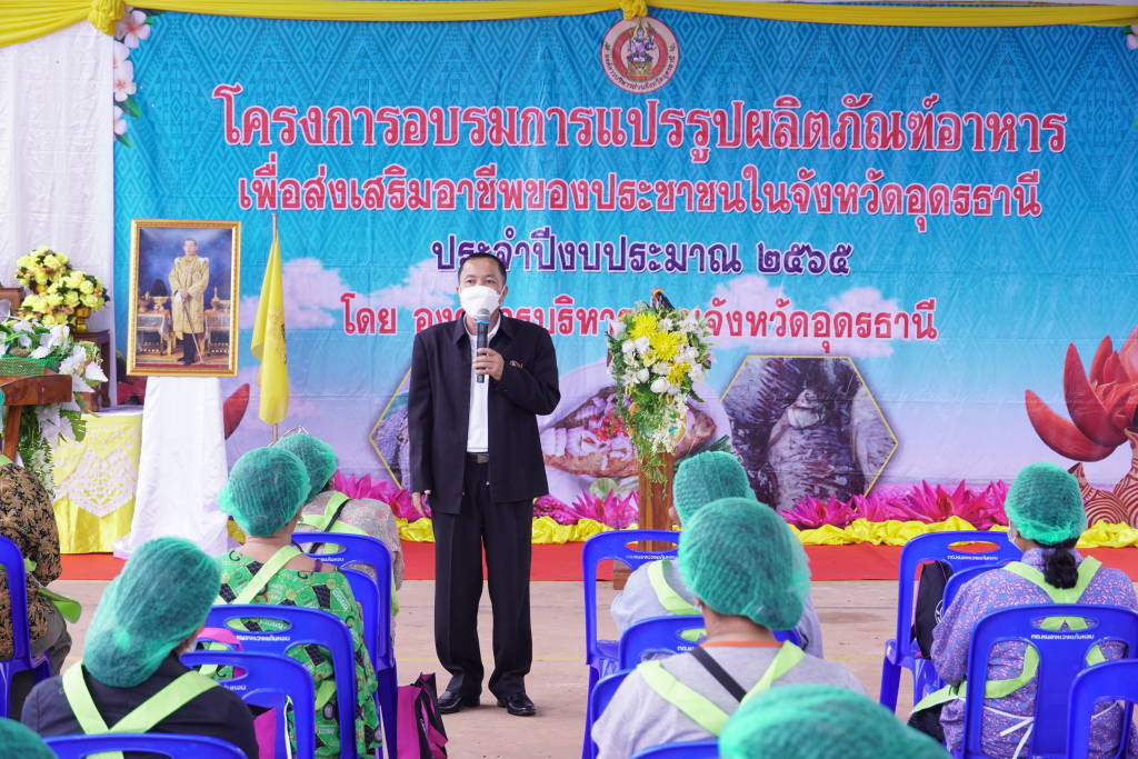 วันที่ 10 พฤษภาคม 2565 เวลา 09.00 น. นายประเทือง เพชรโรจน์ ปลัดองค์การบริหารส่วนจังหวัดอุดรธานี รักษาราชการแทนนายกองค์การบริหารส่วนจังหวัดอุดรธานี มอบหมายให้ ฝ่ายปกครององค์การบริหารส่วนจังหวัดอุดรธานี ดำเนินการจัดโครงการอบรมการแปรรูปผลิตภัณฑ์อาหาร เพื่อส่งเสริมอาชีพของประชาชนในจังหวัดอุดรธานี ประจำปีงบประมาณ 2565 ณ หอประชุมเทศบาลตำบลหนองแวงแก้มหอม อำเภอไชยวาน จังหวัดอุดรธานี