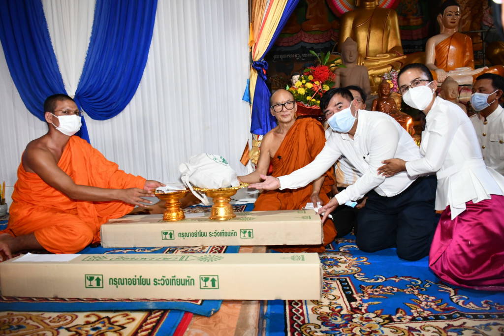 ศรีสะเกษ หลวงพ่อพุฒนำชาวพุทธร่วม 200 คนไปถวายเทียนพรรษา 22 วัดกัมพูชาและเงินสด 12 ล้านเรียล ในวันเข้าพรรษา