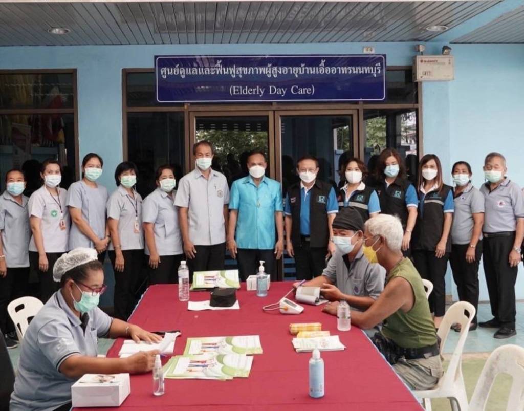 ส่วนสำนักงานพัฒนาสังคมและความมั่นคงของมนุษย์จังหวัดนนทบุรีให้การสนับสนุนเรื่องการพัฒนาคุณภาพชีวิตของผู้มาใช้บริการ และการเคหะแห่งชาติให้การสนับสนุนพื้นที่ศูนย์ชุมชนในโครงการบ้านเอื้ออาทรเป็นที่ทำการศูนย์ดูแลและฟื้นฟูสุขภาพผู้สูงอายุ เนื่องจากในชุมชนของการเคหะแห่งชาติมีผู้อยู่อาศัยเป็นจำนวนมากโดยเฉพาะกลุ่มผู้สูงอายุ ศูนย์ดูแลและฟื้นฟูสุขภาพผู้สูงอายุ (Elderly Day Care) จึงถือเป็นต้นทางการดูแลรักษาผู้ป่วยเบื้องต้น ซึ่งแต่ละวันมีผู้สูงอายุในชุมชนเข้ามารับการบำบัดรักษาเป็นประจำ เนื่องจากการไปรักษาที่โรงพยาบาลจะใช้ระยะเวลานานในการรอพบพบแพทย์เพื่อรับการรักษา และมีค่าใช้จ่ายในการเดินทางค่อนข้างสูง ศูนย์ดังกล่าวจึงมีความสำคัญต่อผู้อยู่อาศัยในชุมชน ทำให้ผู้สูงอายุเดินทางมารับการรักษาได้สะดวกยิ่งขึ้น อีกทั้งคนในชุมชนและทีมแพทย์สาธารณสุขได้คอยให้ความช่วยเหลือ และยังได้พบปะกับคนวัยเดียวกันในชุมชนที่มารับการรักษา เป็นการสร้างความสัมพันธ์ที่ดีระหว่างผู้อยู่อาศัยด้วยกัน ส่งผลให้ผู้สูงอายุมีสุขภาพจิตที่ดี ไม่เกิดภาวะซึมเศร้า ดังนั้นศูนย์ดูแลและฟื้นฟูสุขภาพผู้สูงอายุ (Elderly Day Care) จึงเป็นส่วนสำคัญของชุมชนที่นอกจากจะสร้างความสะดวกให้ผู้สูงอายุแล้วยังช่วยลดภาระของโรงพยาบาลได้อีกด้วย