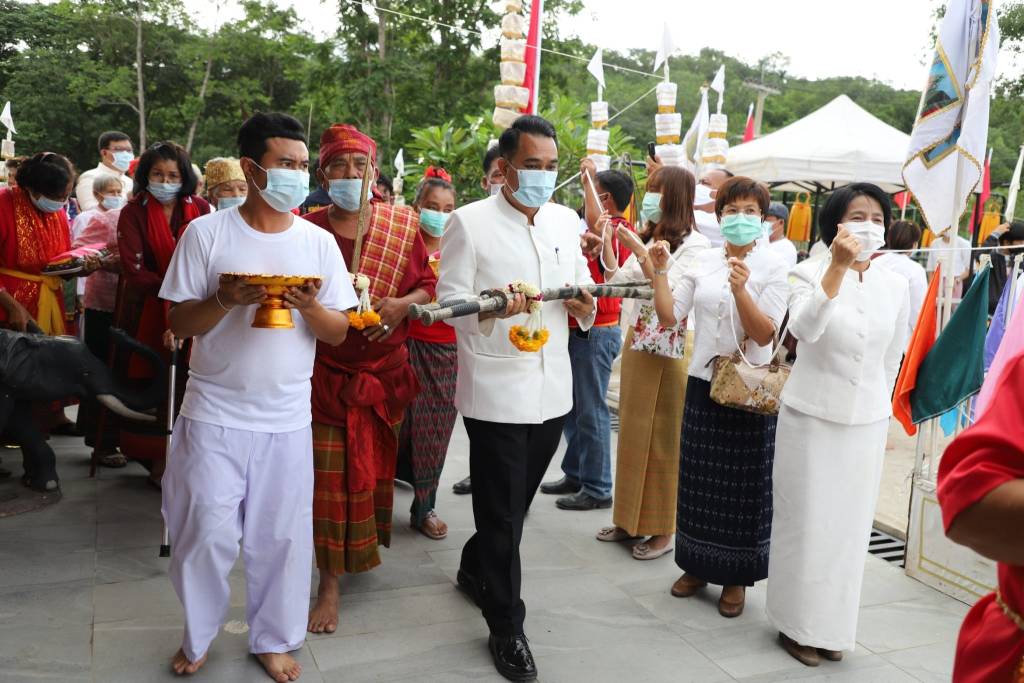 โดยมีนางศิวพร ฉั่วสวัสดิ์ ผู้ว่าราชการจังหวัดหนองบัวลำภู เป็นประธานในพิธี นายประยูร อรัญรุท นายอำเภอเมืองหนองบัวลำภู พร้อมด้วย หัวหน้าส่วนราชการ พ่อค้าคหบดีและพี่น้องประชาชนชาวหนองบัวลำภู ได้เดินทางมาร่วมงานจำนวนมาก ภายใต้การคัดกรองอย่างเข้มงวด เพื่อเป็นการป้องกันการแพร่ระบาดของเชื้อโควิด-19 ซึ่งก่อนการย้ายปู่หลุบ องค์พระวอ พระตา ปู่ส่อง ปู่เซียง ปู่ผาแดง ได้มีพิธีบอกกล่าวคารวะขอขมา การเคลื่อนย้ายศาล ตามประเพณีโบราณ ในการ กด และ กัน แก้ ดวงวิญญาณ