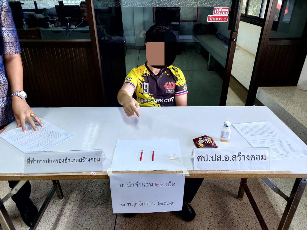 วันที่ 1 พฤศจิกายน 2565 เวลา 12.47 น. นายสกนธ์ กรกฎ นอภ.สร้างคอม สั่งการให้เจ้าพนักงานฝ่ายปกครอง อ.สร้างคอม ดำเนินการป้องกันและปราบปรามยาเสพติดในพื้นที่ และสามารถจับกุมผู้กระทำความผิดเกี่ยวกับยาเสพติดได้ 1 ราย คือ นายจิรพัฒน์ (สงวนนามสกุล) อายุ 21 ปี อยู่ ม.8 ต.เชียงดา อ.สร้างคอม จ.อุดรธานี ของกลาง ยาบ้า จำนวน 21 เม็ด ในข้อหา 1. เสพยาเสพติดให้โทษประเภท 1 เมทแอมเฟตามีน (ยาบ้า) โดยผิดกฎหมาย และขับขี่รถจักรยานยนต์โดยผิดกฎหมาย 2.มียาเสพติดให้โทษประเภท ๑ เมทแอมเฟตามีน (ยาบ้า) ไว้ในครอบครองโดยผิดกฎหมาย โดยจับกุมได้ที่ถนนทางสาธารณะในหมู่บ้านแสนสุข ม.8 ต.เชียงดา อ.สร้างคอม จ.อุดรธานี และควบคุมตัวผู้ต้องหาส่งพนักงานสอบสวน สภ.สร้างคอม เพื่อดำเนินคดีตามกฎหมายต่อไป