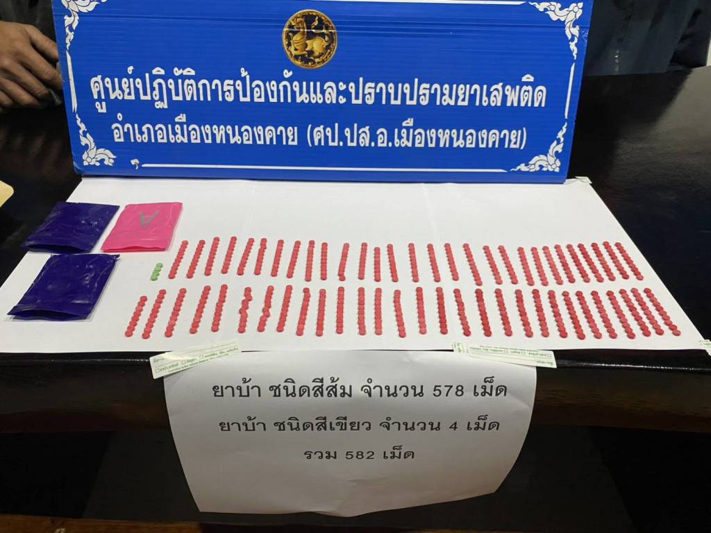 จับกุมผู้ต้องหา 3 คน พร้อมของกลางยาบ้า จำนวน 582 เม็ด รถจักรยานยนต์ จำนวน 2 คัน บริเวณริมถนนทางออกหมู่บ้านหนองหมื่น ต.ค่ายบกหวาน อ.เมืองหนองคาย จ.หนองคาย จึงได้นำตัวผู้ต้องหาพร้อมของกลาง ส่งพนักงานสอบสวน สภ.เมืองหนองคาย ดำเนินคดีตามกฎหมายต่อไป
