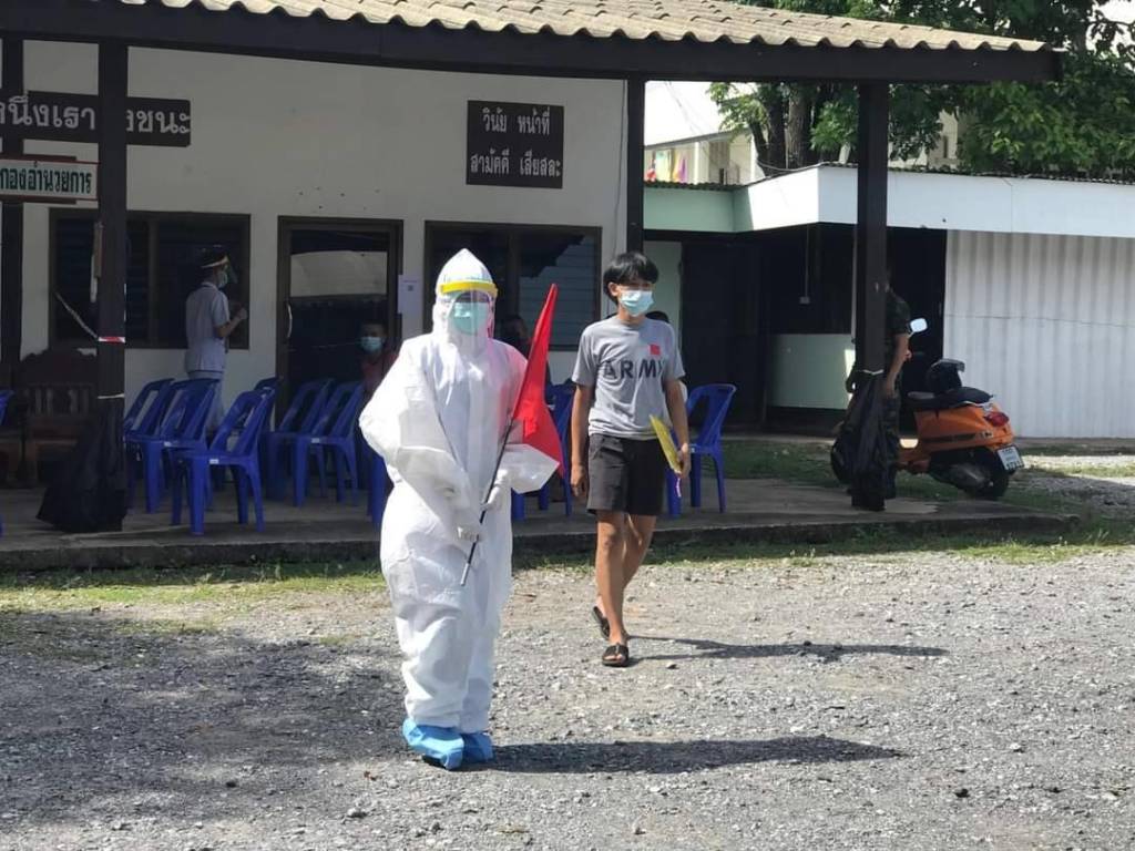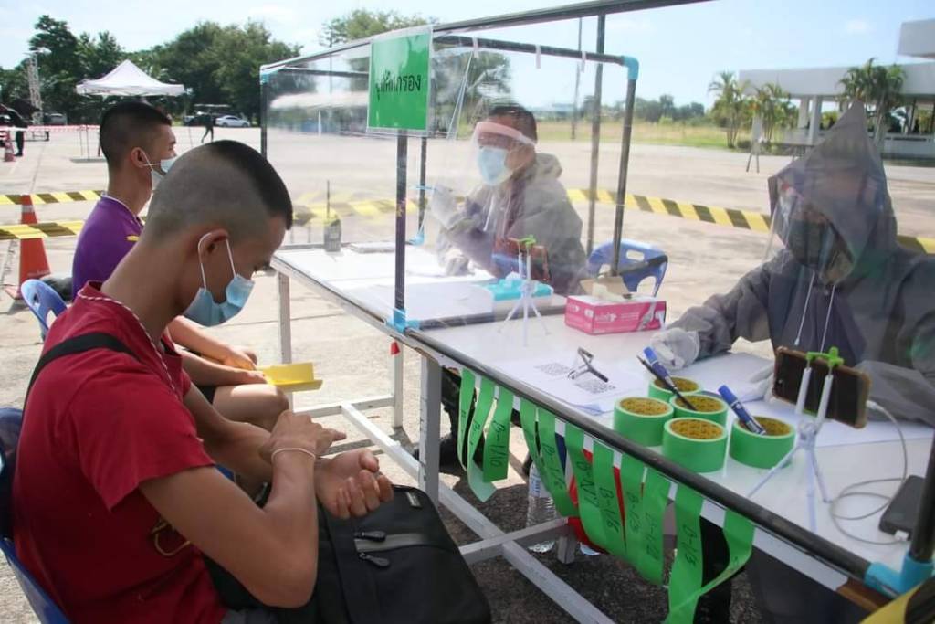วันนี้ (1 ก.ค.64) เวลา 07.30 น. พลตรี พิทักษ์ จันทร์เขียว ผู้บัญชาการมณฑลทหารบกที่ 24 พร้อมด้วยคณะผู้บังคับบัญชา ลงพื้นที่ตรวจเยี่ยมดูความเรียบร้อย ในการต้อนรับทหารกองเกินเข้ารายงานตัวรับราชการเป็นทหารกองประจำการ ผลัดที่ 1/2564 จำนวน 1,122 นาย ซึ่งแบ่งเป็นพื้นที่จังหวัดอุดรธานี จำนวน 741 นาย จังหวัดหนองคาย จำนวน 238 นาย และสมัครทางช่องทางออนไลน์ จำนวน 143 นาย ในการรายงานตัวเข้าประจำการนั้น กองทัพบกและศูนย์บริหารสถานการณ์แพร่ระบาดของโรคติดเชื้อไวรัสโคโรนา 2019 ได้กำหนดมาตราการการป้องกันการแพร่ระบาดของเชื้อไวรัสโคโรนา 2019 อย่างเคร่งครัด โดยทางมณฑลทหารบกที่ 24 ได้จัดเจ้าหน้าที่ ทีมแพทย์ พยาบาล บุคลากร มาคัดกรองอุณหภูมิ ซักประวัติทหารใหม่และตรวจหาเชื้อก่อนส่งเข้าประจำการตามหน่วยทหารในพื้นที่ จากนั้น พลตรี พิทักษ์ จันทร์เขียว ผู้บัญชาการมณฑลทหารบกที่ 24 กล่าวว่า “วิธีคัดกรองทหารใหม่ทุกนาย ยึดมาตรการป้องกันเชื้อไวรัสโควิด-19 ตามที่กรมแพทย์ทหารบก กรมยุทธศึกษาทหารบก และกรมควบคุมโรค กระทรวงสาธารณสุขกำหนดอย่างเคร่งครัดในทุกขั้นตอน