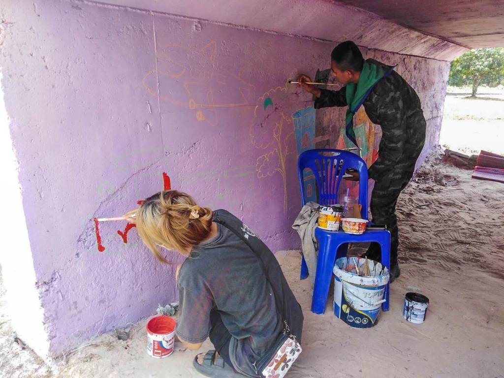 ทหารช่วยเหลือโรงเรียนชายแดน ทำสื่อการสอนในหลุมหลบภัย หมู่บ้านชายแดน อ.กันทรลักษ์ จ.ศรีสะเกษ