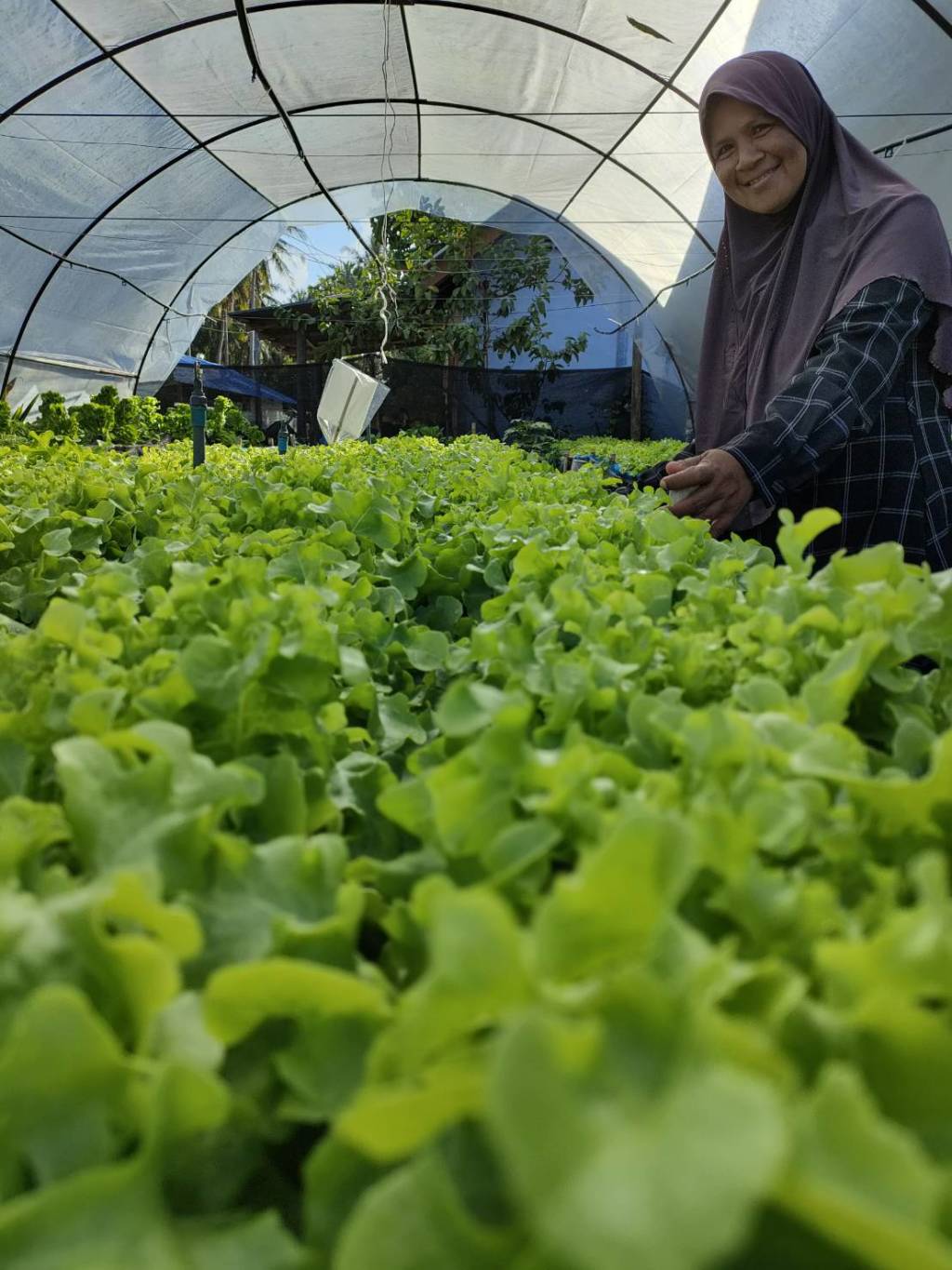 ต่อมาศูนย์ศึกษาการพัฒนาพิกุลทองฯ ได้สนับสนุนทะลายปาล์ม เพื่อใช้ทำปุ๋ยหมัก และสนับสนุนโรงเรือนแบบโครงเหล็กขนาดกว้าง 1.20 เมตร ยาว 2.40 เมตร จำนวน 1 หลัง เพื่อใช้ปลูกผักไร้ดินหรือผักไฮโดร โปรนิกส์ สำนักงานเกษตรจังหวัดนราธิวาส ให้การสนับสนุนแคร่ปลูกผักขนาด 1.20 x 4.00 เมตร จำนวน 4 แคร่ จึงทำการปลูกผักแบบยกแคร่ ซึ่งช่วยประหยัดพื้นที่ ป้องกันน้ำท่วมขัง และช่วยกำจัดวัชพืชได้ง่าย ที่สำคัญการปลูกผักยกแคร่ จะเน้นการปลูกพืชแบบอินทรีย์ ไม่ใช้สารเคมีใด ๆ และได้ลาออกจากอาสาสมัครเกษตรของสำนักงานเกษตรและสหกรณ์ เมื่อปี 2563 เนื่องจากต้องลดกิจกรรมเพื่อให้เวลากับการปลูกผักสลัดมากขึ้น ปัจจุบันปี 2566 ได้ใช้พื้นที่หลังบ้าน เลี้ยงแพะ จำนวน 3 ตัว เลี้ยงวัว จำนวน 8 ตัว ทั้งนี้ได้นำมูลวัวมาใช้ทำปุ๋ยในแปลง และเป็นส่วนประกอบของปุ๋ยหมักที่ทำไว้ใช้เอง ช่วยลดต้นทุนเรื่องปุ๋ยอย่างมาก ส่วนพื้นที่รอบบ้าน จำนวน 2 งาน ได้ทำการปลูกผักสลัดแบบยกแคร่ ต้องอาศัยการปรับปรุงดินด้วยปุ๋ยหมักจำนวนมากพอสมควร จึงหันมาปลูกผักแบบยกแคร่ ซื้อหน้าดินมาผสมกับเปลือกมะพร้าวสับ ใส่ปุ๋ยหมักที่มีส่วนผสมของมูลวัว เนื่องจากพื้นที่บริเวณบ้านใหม่ เป็นดินทรายจัดมีความอุดมสมบูรณ์ต่ำ ดังนั้นการปลูกพืชผักในดินจึงไม่ค่อยสมบูรณ์มากนักเพราะต้องดูแลเอาใจใส่ตลอด จึงหันมาปลูกผักสลัดชนิดต่าง ๆ เช่น กรีนโอ๊ค เรดโอ๊ค กรีนคอส สามารถเก็บผลผลิตได้ทุกวัน สร้างรายได้วันละ 300-500 บาท นอกจากนี้ช่วงวันเสาร์-อาทิตย์ ยังพอมีเวลาว่าง จึงไปเรียนรู้เพิ่มเติมโดยเข้าร่วมโครงการบัณฑิตพันธุ์ใหม่ (Up Skill-Re Skill) ซึ่งเป็นหลักสูตรการผลิตพืชด้วยระบบอัจฉริยะ และกำลังคนที่มีสมรรถนะ เพื่อตอบโจทย์ภาคการผลิตตามนโยบายการปฏิรูปการอุดมศึกษาไทย ประเภทประกาศนียบัตร รุ่นที่ 1 คณะเกษตรศาสตร์ มหาวิทยาลัยนราธิวาสราชนครินทร์ โดยได้เรียนรู้เกี่ยวกับการทำเกษตรอัจฉริยะในทุกด้านทั้ง การปลูก การตลาด การใช้เทคโนโลยีในด้านการให้น้ำและการผลิตพืช ซึ่งเป็นการเรียนรู้พร้อมการปฏิบัติจริงในพื้นที่ฟาร์ม ผู้เรียนต้องออกแบบการให้น้ำและการผลิตพืชแตกต่างกันไปตามสภาพพื้นที่ของแต่ละฟาร์ม