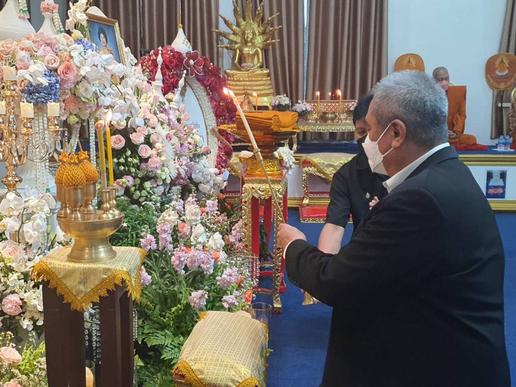 เจ้าภาพสวดพระอภิธรรม นายกอบจ. พร้อมทีมบริหาร เป็นเจ้าภาพสวดพระอภิธรรมบำเพ็ญกุศลศพ นางอ่อนอุษา พัฒนรัฐ ณ ฌาปนสถานกองทัพอากาศ