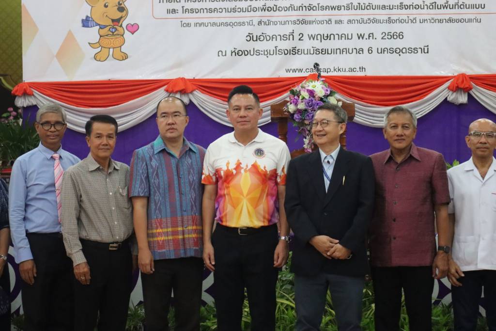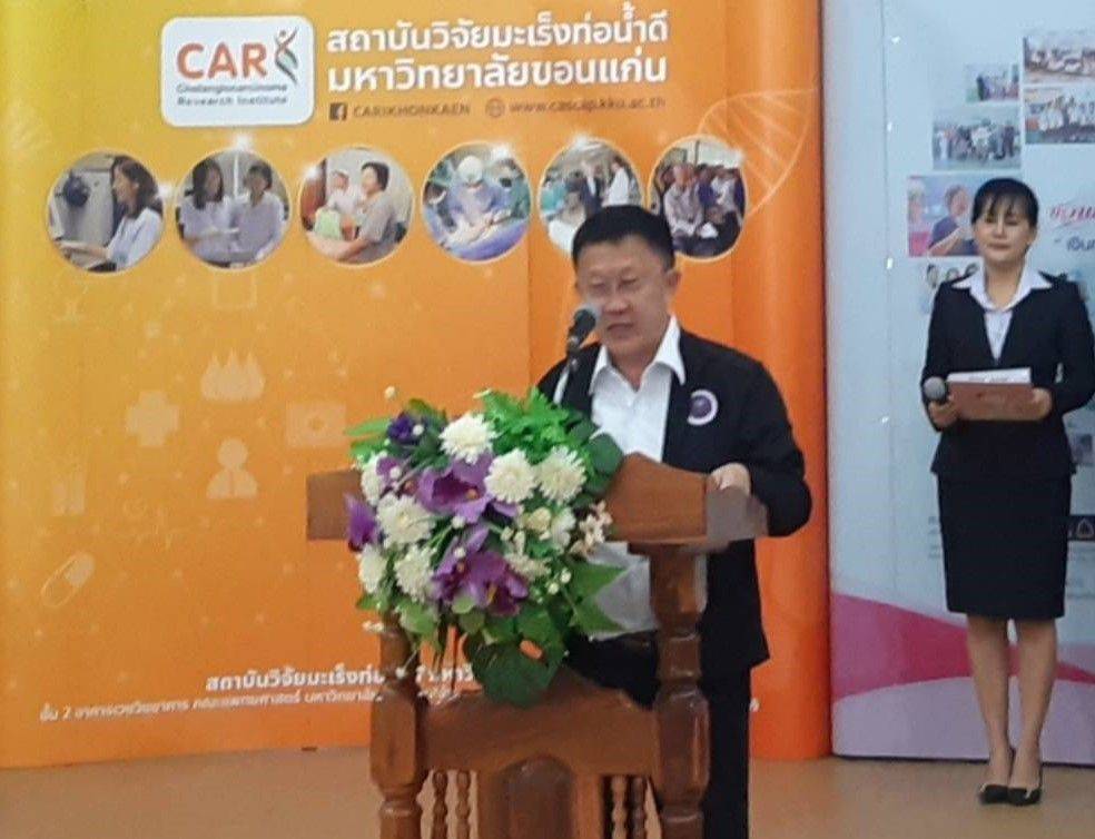 โดยมี นายนิติพัฒน์ ลีลาเลิศแล้ว รอง ผวจ.อุดรธานี เป็นประธานกล่าวเปิดงาน ดร.ดนุช ตันเทอดทิตย์ เลขานุการรัฐมนตรีว่าการกระทรวงการอุดมศึกษา วิทยาศาสตร์ วิจัยและนวัตกรรม ดร.ธนดร พุทธรักษ์ นายกเทศมนตรีนครอุดรธานี กล่าวรายงาน รองผู้อำนวยการสำนักงานการวิจัยแห่งชาติ ประธานคณะกรรมการเขตสุขภาพเพื่อประชาชน เขตพื้นที่ 7 ประธานคณะกรรมการเขตสุขภาพเพื่อประชาชน เขตพื้นที่ 8 นายศักดา เกตุแก้ว รองนายก อบจ.อุดรธานี ผู้อำนวยการกองการแพทย์ เทศบาลนครอุดรธานี ประธานมูลนิธิมะเร็งท่อน้ำดี รักษาการแทนผู้อำนวยการสถาบันวิจัยมะเร็งท่อน้ำดี ภาคีเครือข่ายภาคประชาชน แขกผู้มีเกียรติ และสื่อมวลชน ร่วมเป็นเกียรติในกิจกรรม