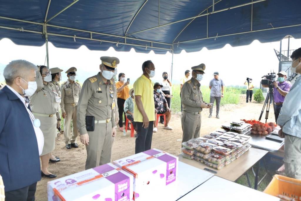 ต่อมาคณะฯ เดินทางไปเยี่ยมชมพื้นที่การเกษตรของราษฎรที่ได้รับประโยชน์จากโครงการอ่างเก็บน้ำห้วยท่าเคยฯ จำนวน 2 ราย ประกอบด้วย แปลงไม้ผลของนายชัชวาล นรนิ่ม (สวนตาชัช “หลงบ้านคา” ทุเรียนอารมณ์ดี) ประกอบอาชีพเกษตรกรรม มีพื้นที่การเกษตรประมาณ 18 ไร่ เดิมทำสวนยางพารา ไร่สับปะรดและมันสำปะหลัง ต่อมาได้เปลี่ยนเป็นการปลูกทุเรียนหลายสายพันธุ์ผสมผสานกับไม้ผลอื่น ๆ และไม้ป่าเศรษฐกิจ เพื่อสร้างความสมดุลให้กับระบบนิเวศ มีการปรับปรุงบำรุงดินให้สมบูรณ์ รวมทั้งใช้หลักเกษตรอินทรีย์ในการเพาะปลูก โดยมีอ่างเก็บน้ำห้วยท่าเคย ฯ เป็นแหล่งสนับสนุนน้ำให้กับสวนเกษตร ในปีนี้ได้จำหน่ายทุเรียนให้แก่กลุ่มเพื่อนและบุคคลที่รู้จัก ซึ่งสามารถสร้างรายได้ประมาณ 100,000 บาท/ปี จากนั้นคณะฯ เดินทางไปยังแปลงมันเทศญี่ปุ่นของนายเพลิน แดงสะอาด (ไร่แดงสะอาด อาณาจักรมันหวานญี่ปุ่น) มีพื้นที่การเกษตรทั้งที่เป็นของตนเองและที่ดินเช่า รวมประมาณ 40 ไร่ เดิมปลูกหัวไชเท้าและสับปะรด ต่อมาได้เปลี่ยนเป็นการปลูกมันเทศญี่ปุ่น โดยได้รับการสนับสนุนด้านความรู้และเทคนิคต่าง ๆ จากมูลนิธิโครงการหลวง และใช้น้ำจากระบบท่อส่งน้ำอ่างเก็บน้ำห้วยท่าเคยฯ ในช่วงการแพร่ระบาดของโรคโควิด-19 บุตรชายของนายเพลินฯ ได้กลับมาช่วยครอบครัวทำการเกษตรและทำการจำหน่ายมันเทศญี่ปุ่นคุณภาพดีสายพันธุ์ต่าง ๆ ผ่านทาง Facebook ในชื่อ “ไร่แดงสะอาด อาณาจักรมันหวานญี่ปุ่น” จนเป็นที่นิยมและมีเครือข่ายลูกค้าจำนวนมาก สามารถจำหน่ายผลผลิตได้เพิ่มขึ้นอย่างต่อเนื่อง สร้างรายได้ประมาณ 70,000-80,000 บาท/เดือน ทั้งนี้ในพื้นที่จังหวัดราชบุรี มีโครงการอันเนื่องมาจากพระราชดำริ รวม 54 โครงการ ซึ่งส่วนใหญ่เป็นโครงการพัฒนาด้านแหล่งน้ำถึง 41 โครงการ และได้สร้างคุณภาพชีวิตที่ดีขึ้นให้แก่ราษฎรได้ประกอบอาชีพอย่างมั่นคงสืบไป