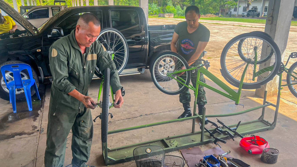 ร.13 พัน.1 ซ่อมแซมจักรยานก่อนนำไปมอบให้กับเด็กนักเรียนในถิ่นทุรกันดาร จะได้นำไปมอบให้กับเด็กนักเรียนในช่วงเปิดภาคเรียนที่จะถึงนี้ต่อไป