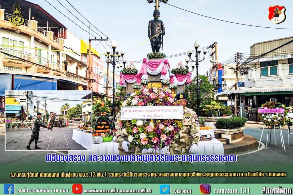 ร.13 พัน.1 ร่วมพิธีบวงสรวงและวางพวงมาลาอนุเสาวรีย์พระยาสุนทรธรรมธาดา