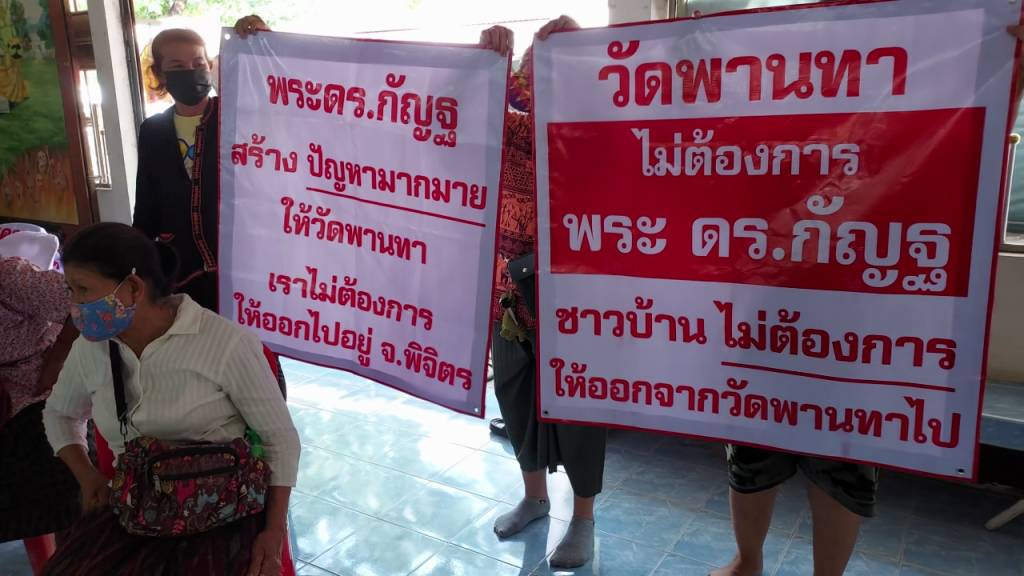 นางจตุพร ผุดผ่อง ประธานชุมชนโนนเขวา อายุ 57 ปี กล่าวว่า ตั้งแต่ พระ ดร. ได้มาจำที่วัดพันทา คณะสงฆ์และชาวชุมชนพันทา ก็มีข้อขัดแย้งกัน ชาวบ้านก็เริ่มไปทำบุญน้อยลงและได้ยกป้ายขับไล่ จึงขอนิมนต์ พระ ดร. ได้ย้ายไปจำวัดที่อื่นด้วย////