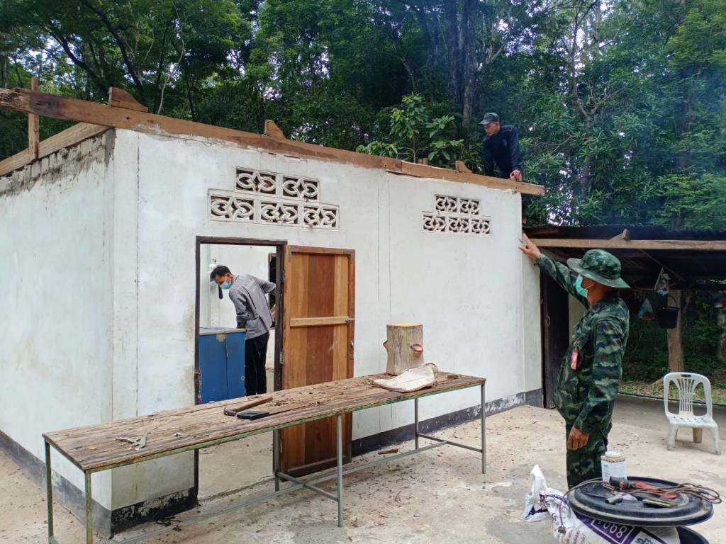 ## ร.13 พัน.2 ร่วมกับผู้นำชุมชน ซ่อมแซมบ้านประชาชน##